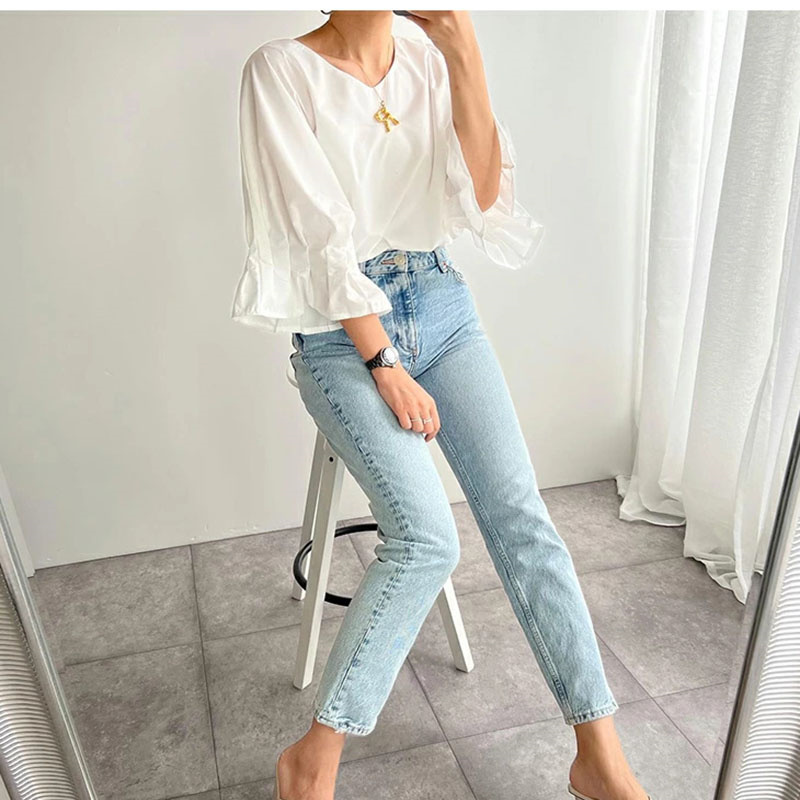 シアースリーブ ドッキングシャツ ボウタイシャツブラウス