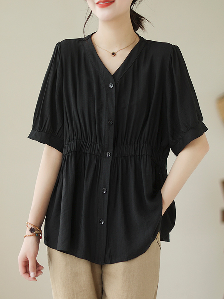 楽チン、きれいめ Vネックシャーリング