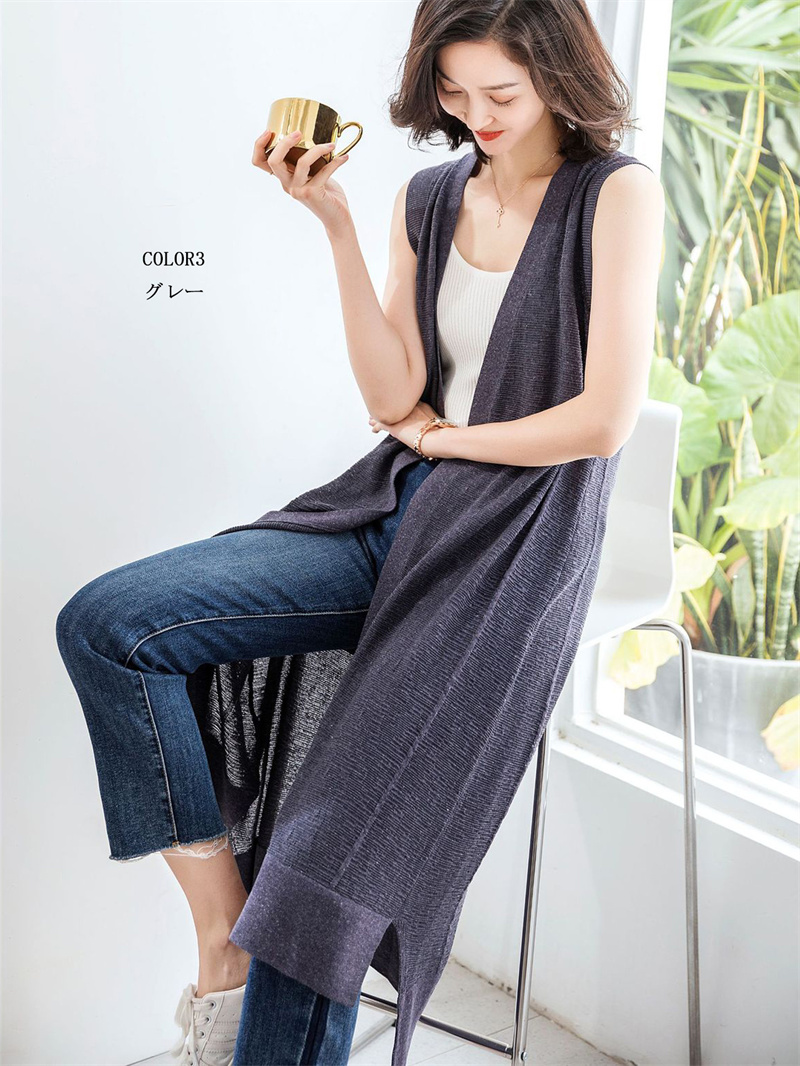 接触冷感ロングジレ ニットソー カット
