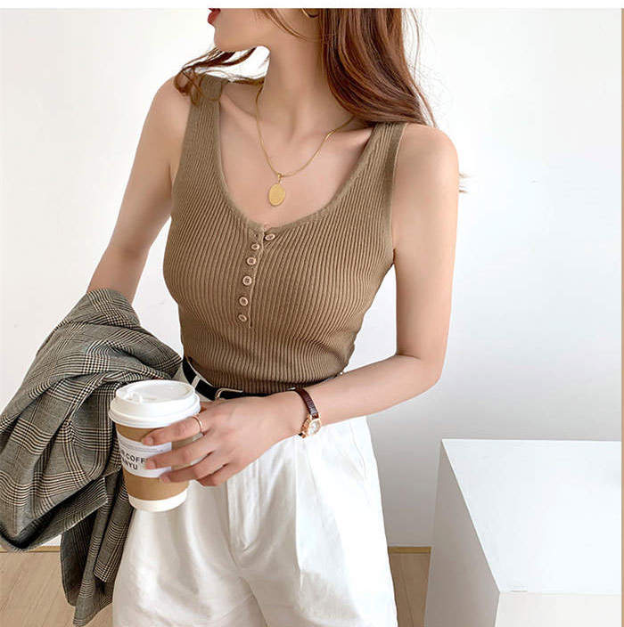 タンクトップレディースTシャツノースリーブUネックロゴプリント