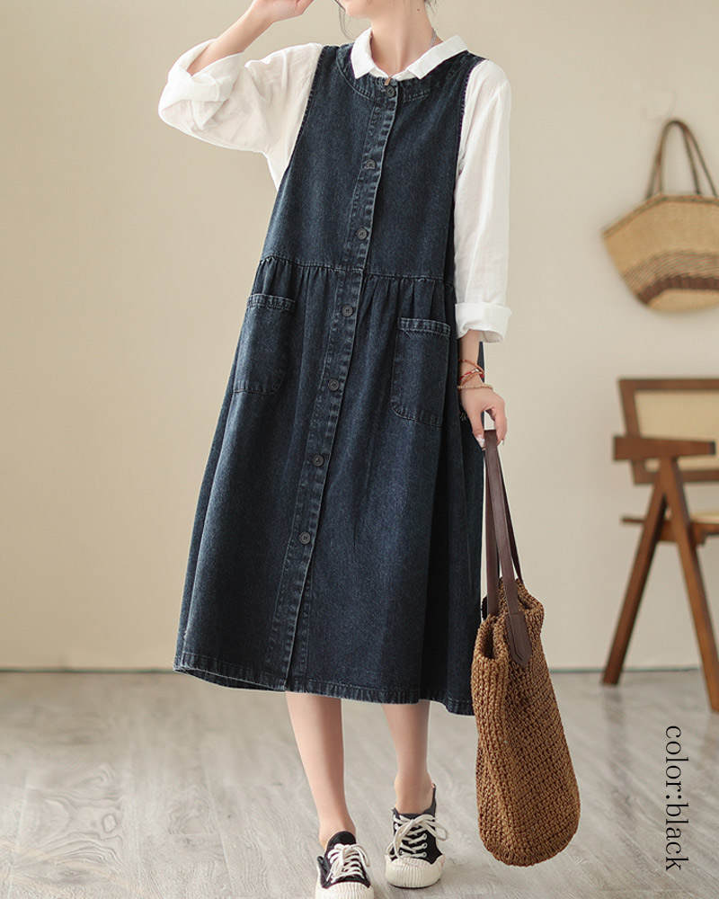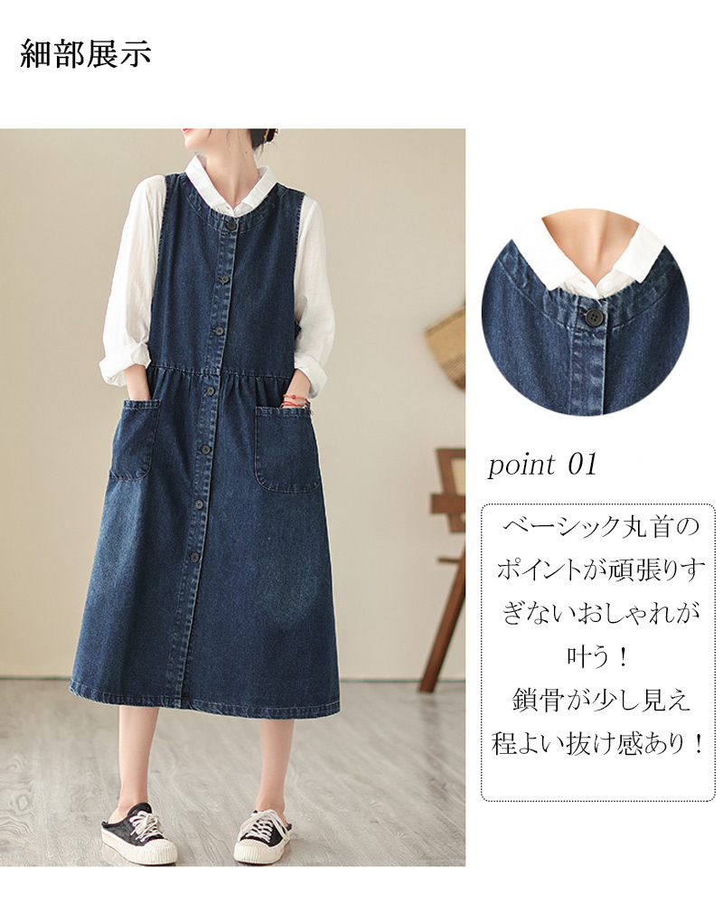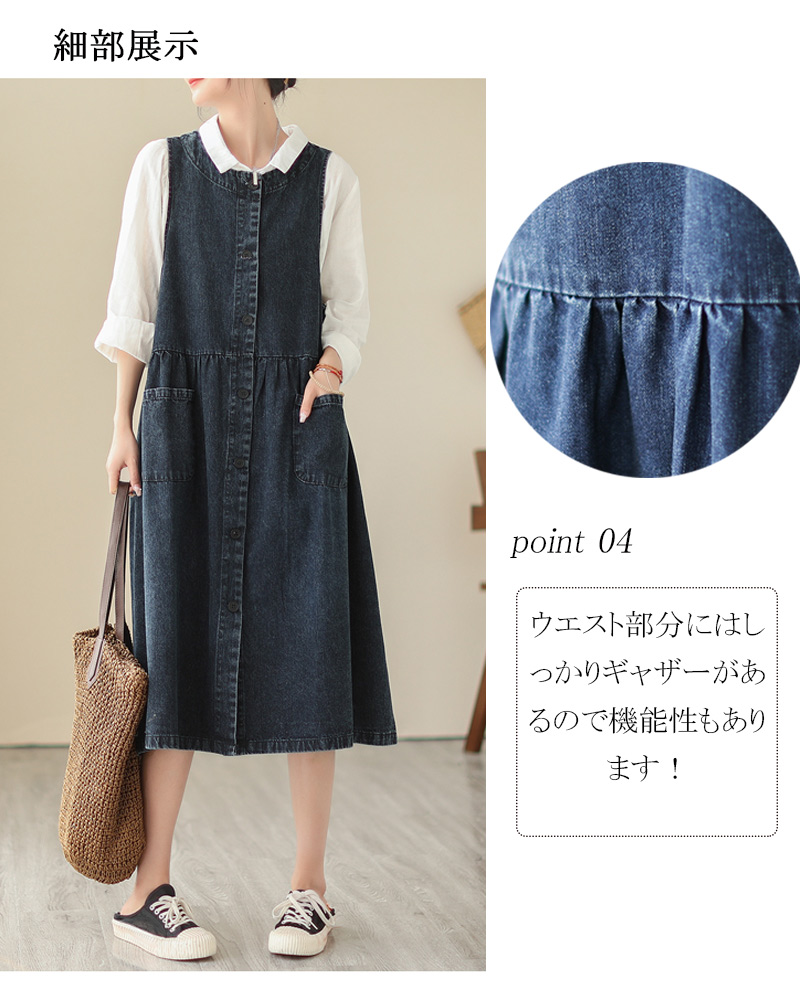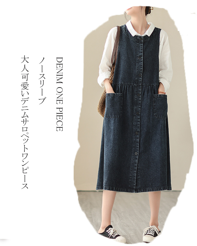 デニムワンピース ノースリーブ サロペ