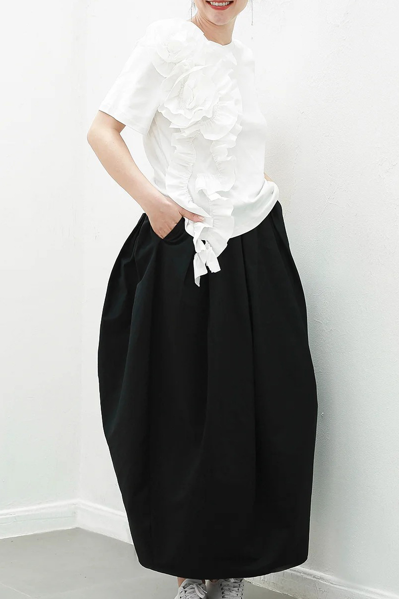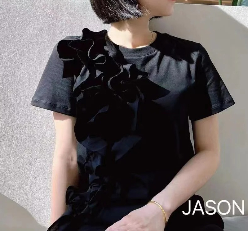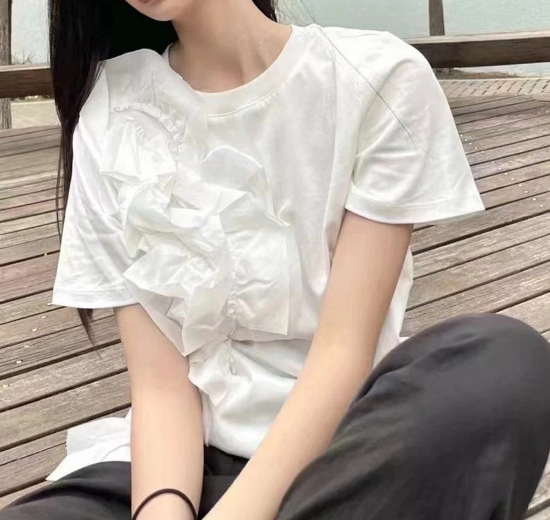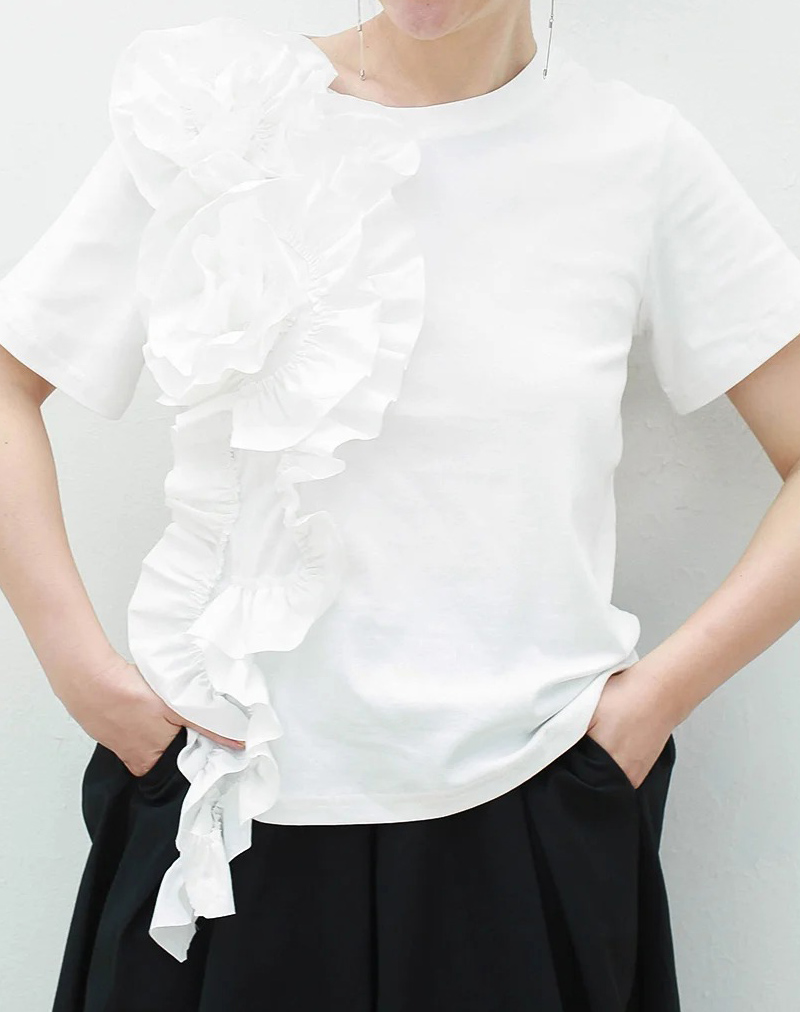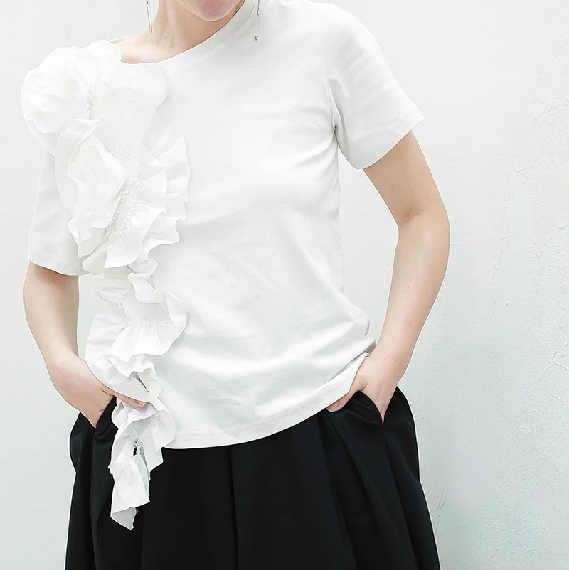 切り替えTシャツ ビッグ立体花 夏 カ