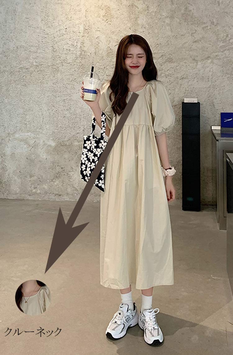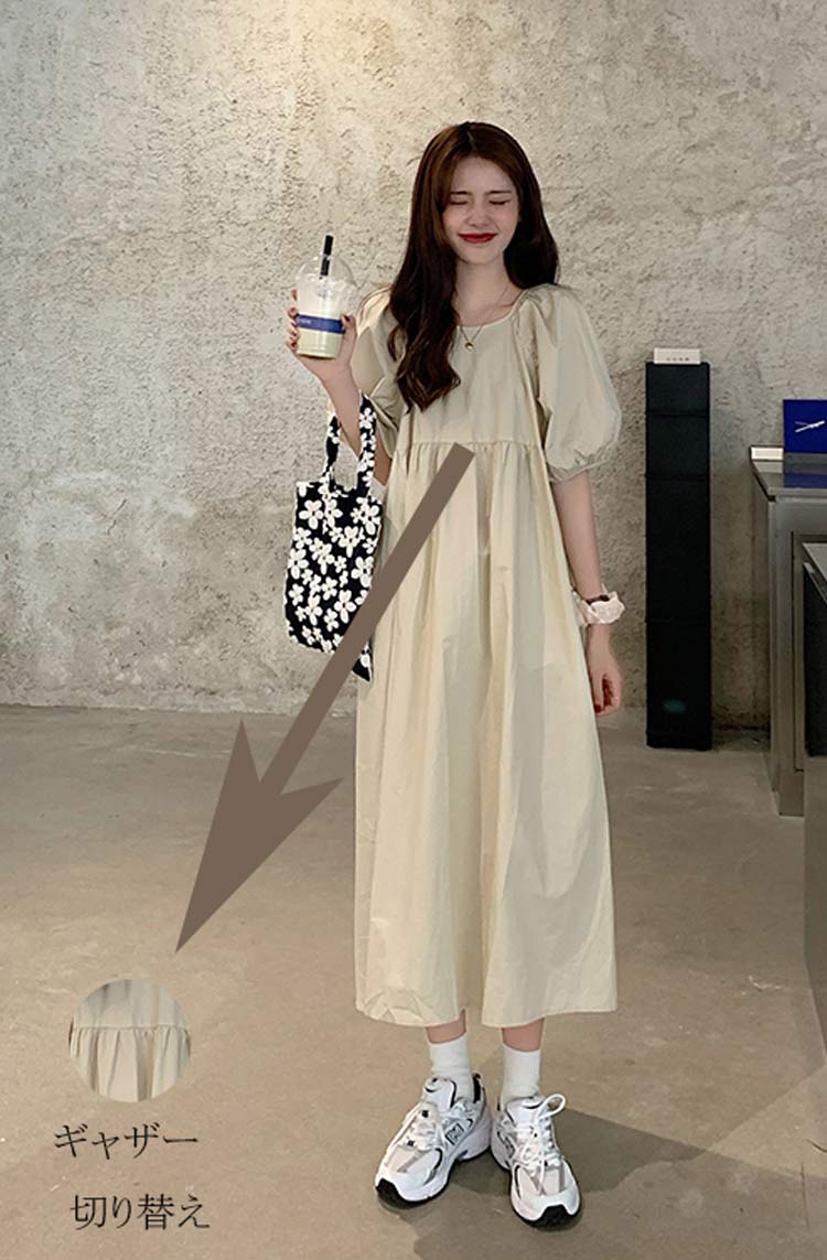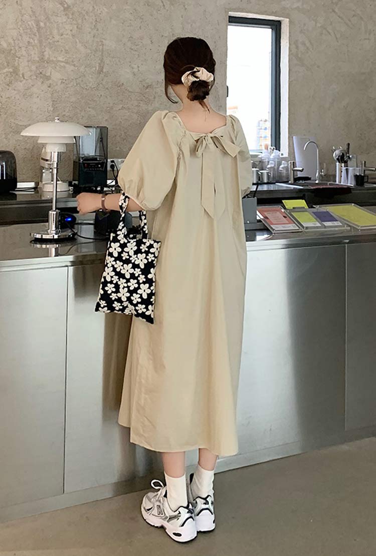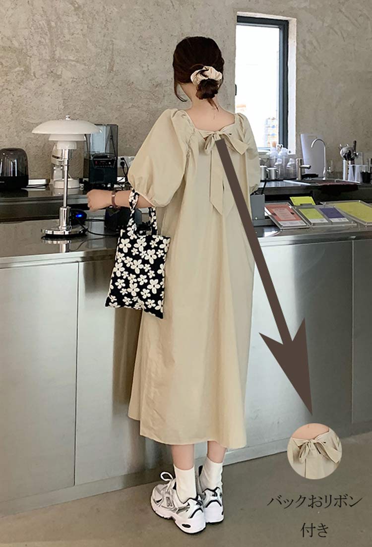 可愛いパフスリーブバックおリボン付きワ