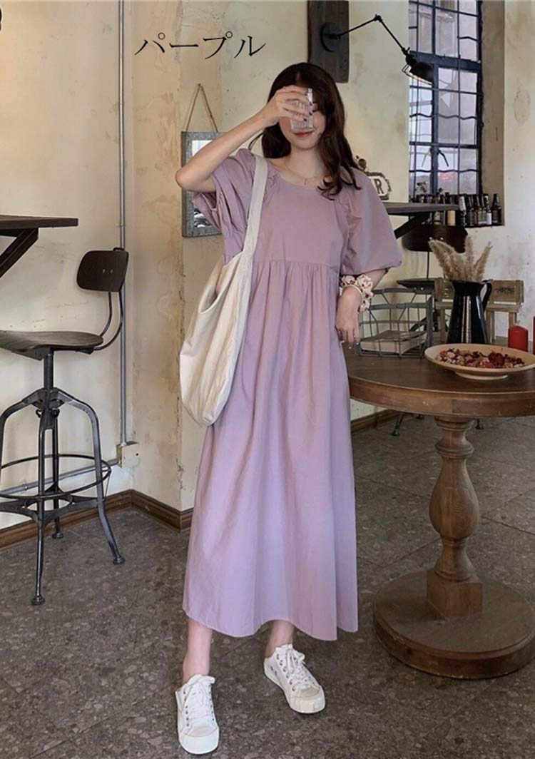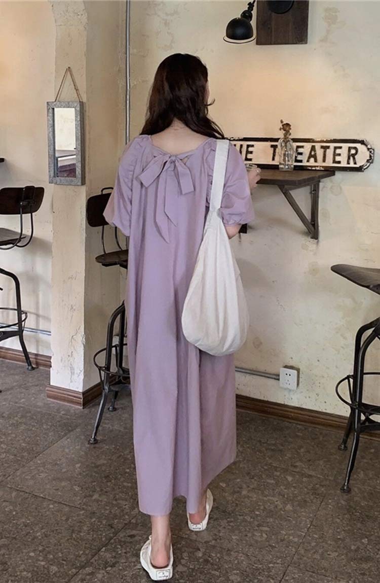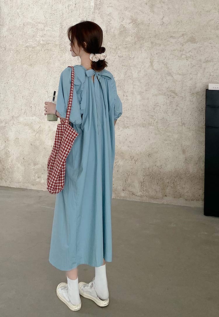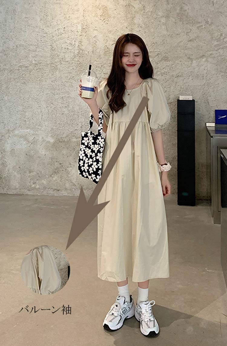 可愛いパフスリーブバックおリボン付きワ