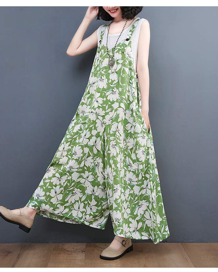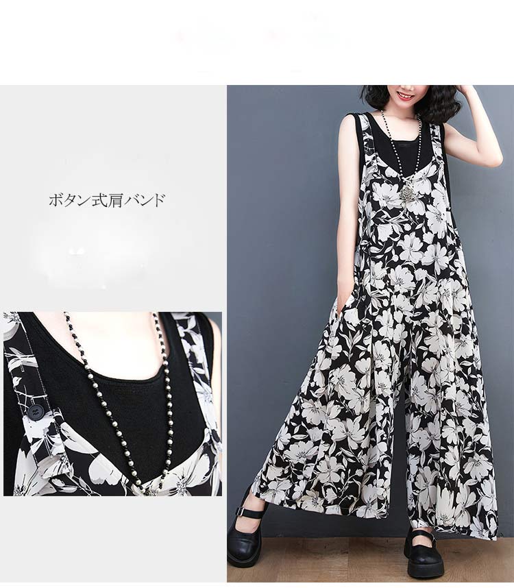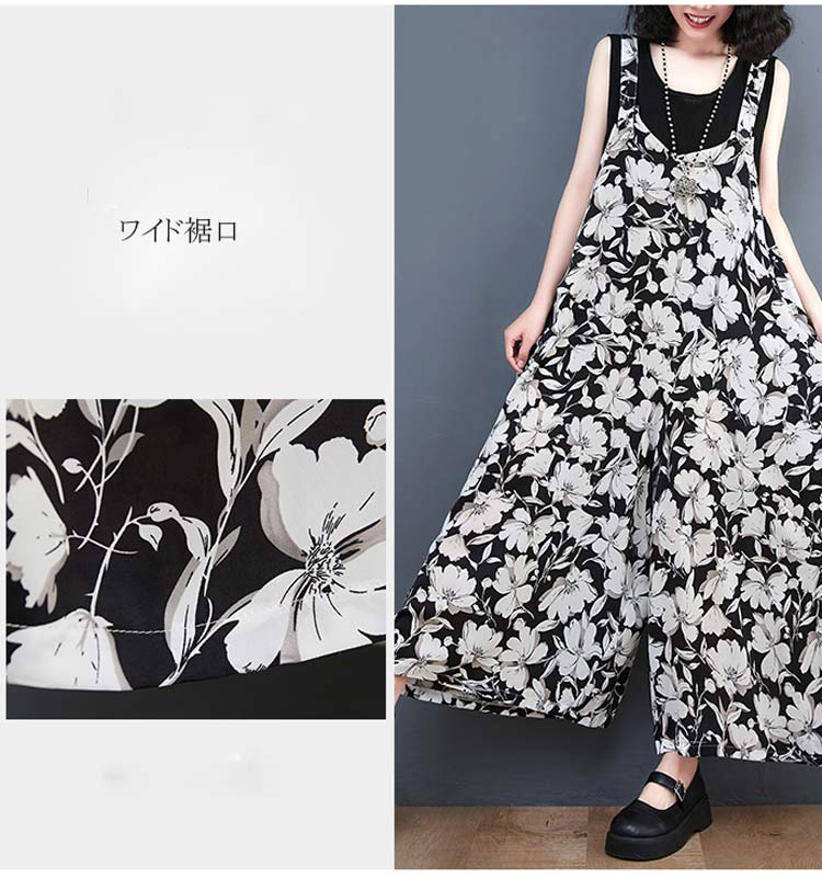 サロペット レディース 花柄 ガウチョ