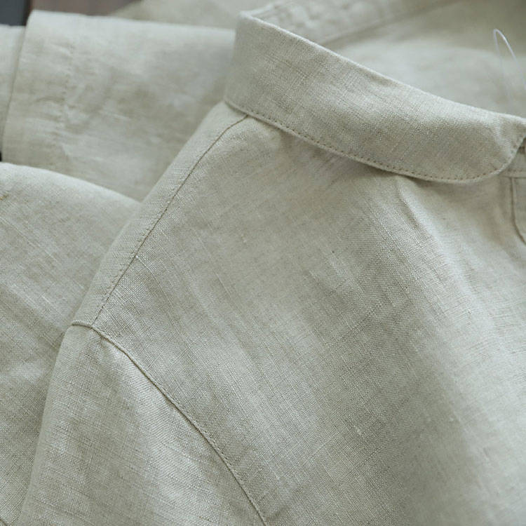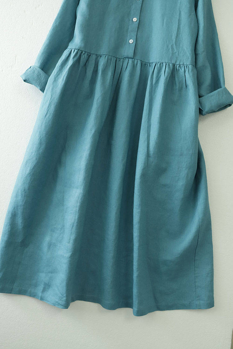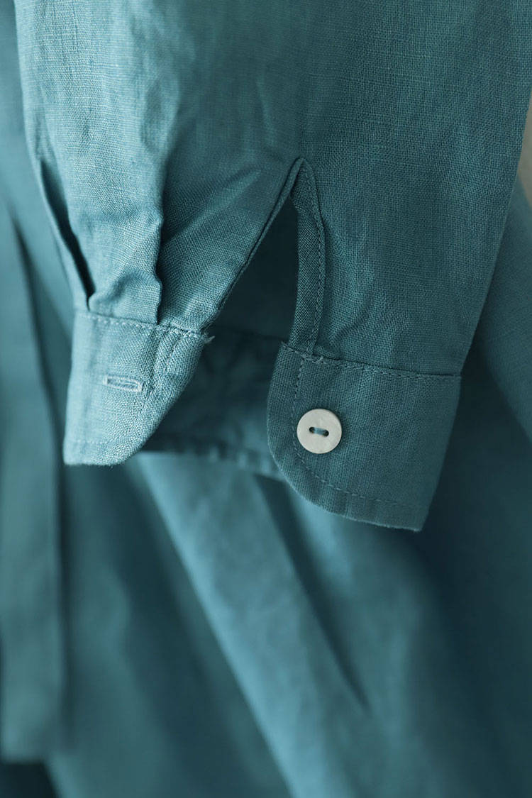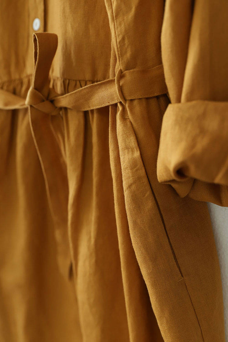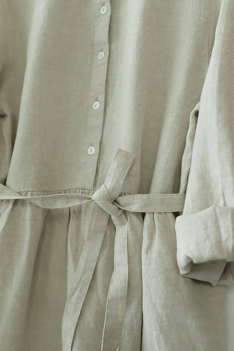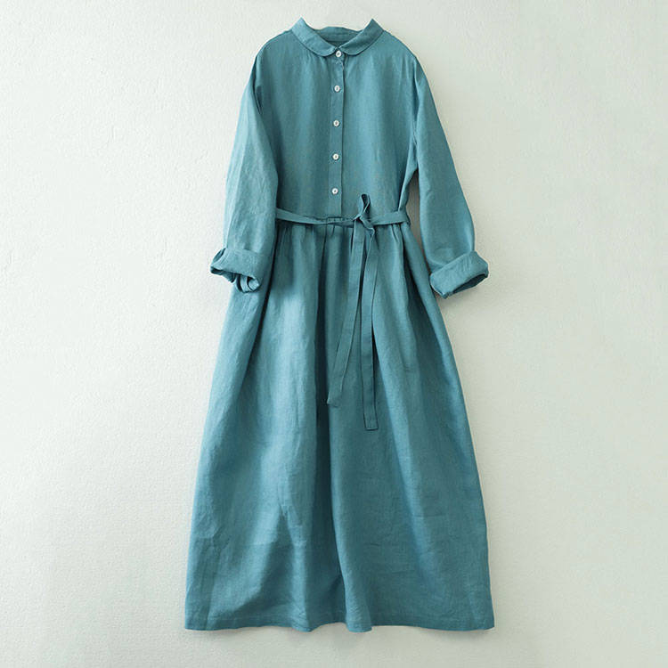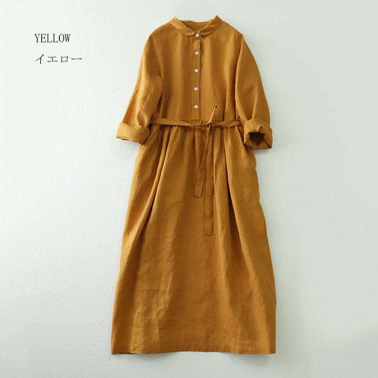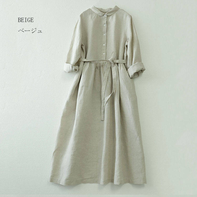 シャツワンピース ロング丈 長袖 リネ
