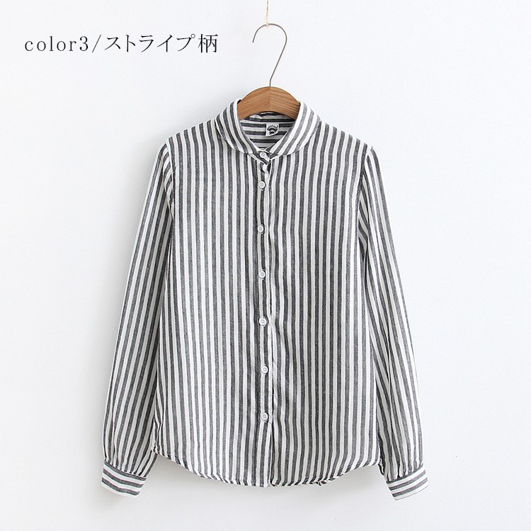 ストライプ 長袖ガーゼ綿シャツ シャツ