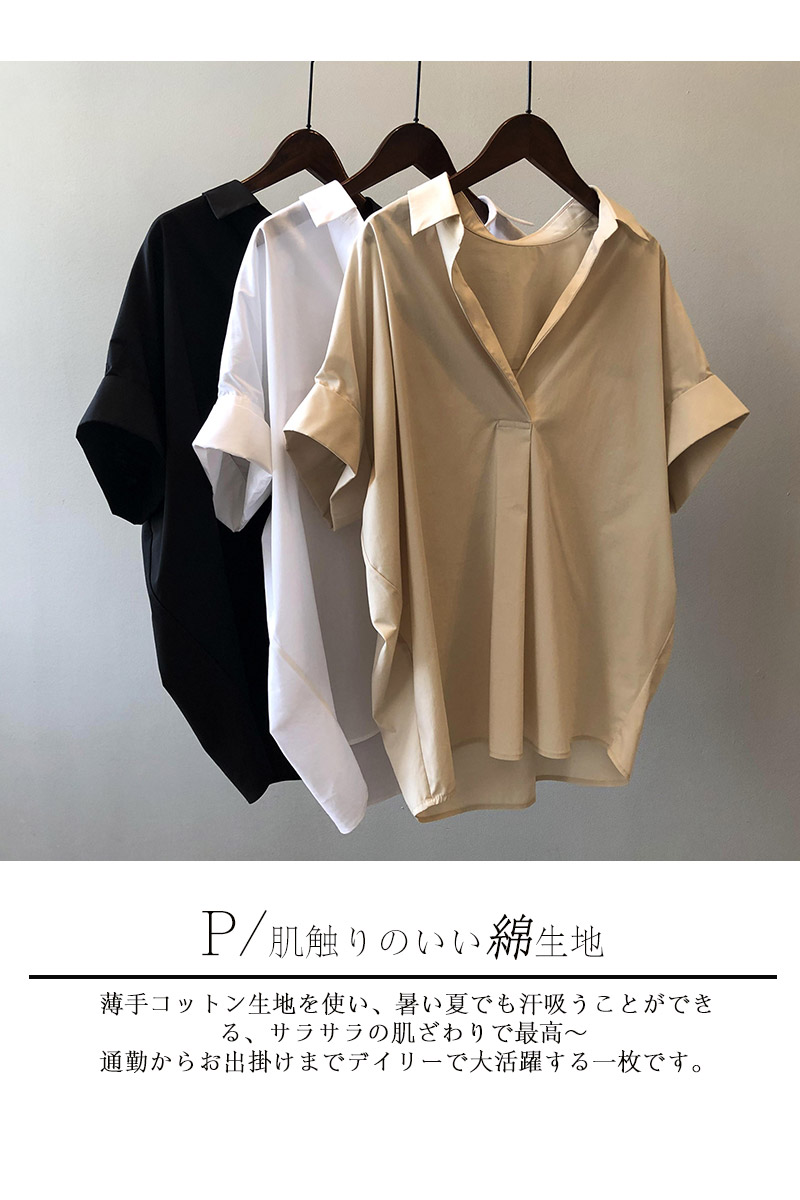 襟づきドルマンスタイルシャツブラウス