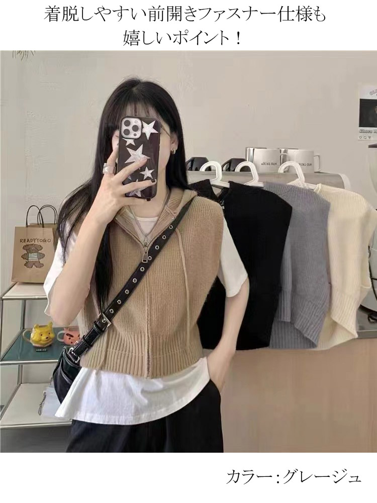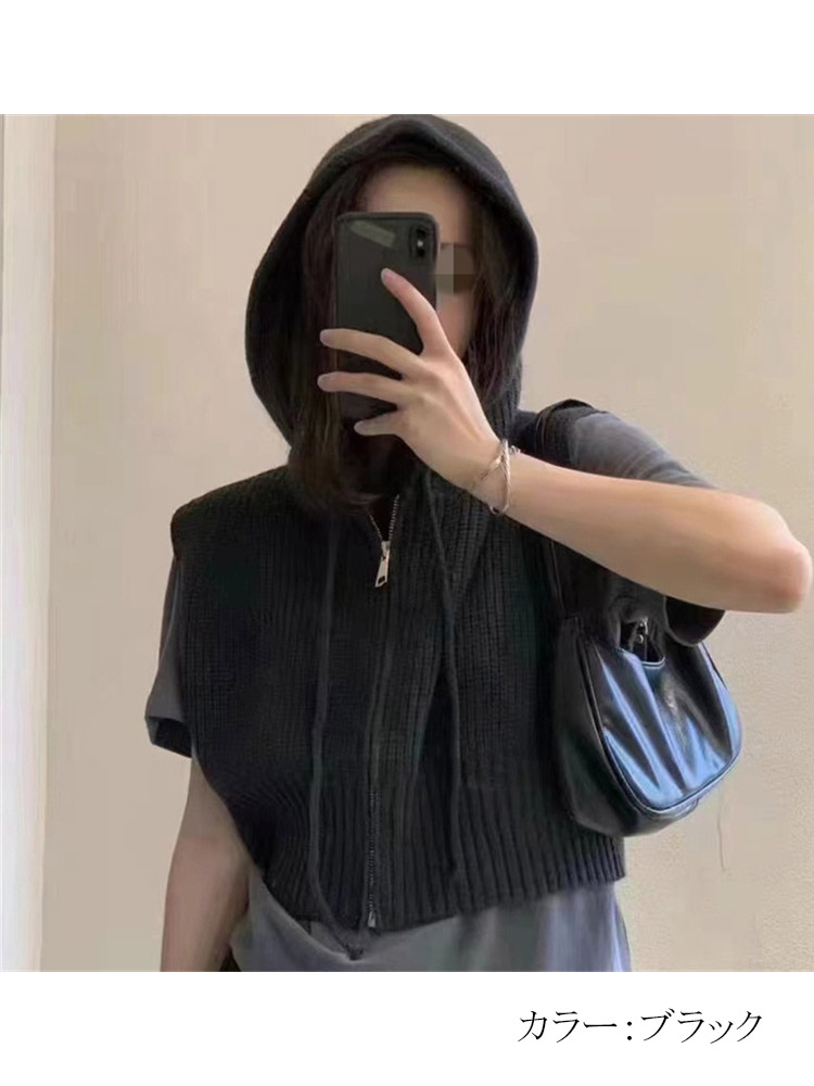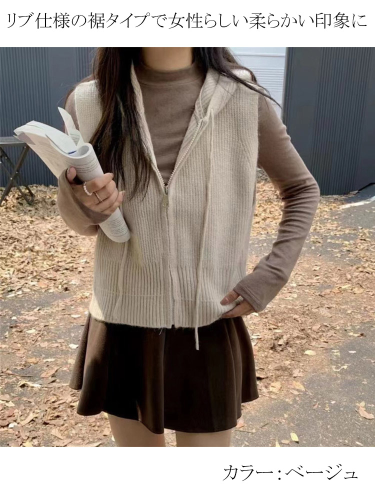 定番のフード付きニットベスト ベスト