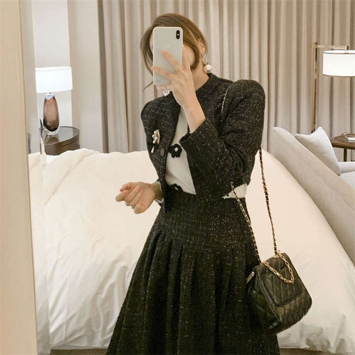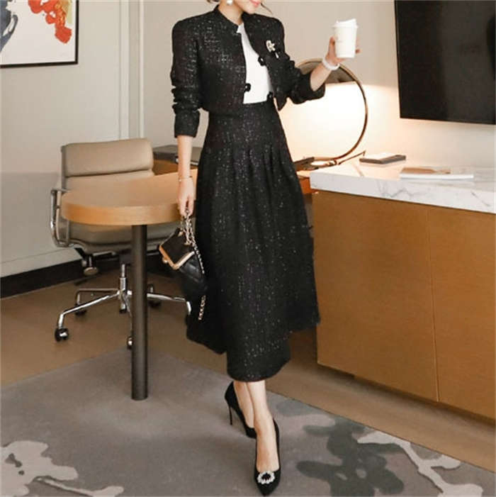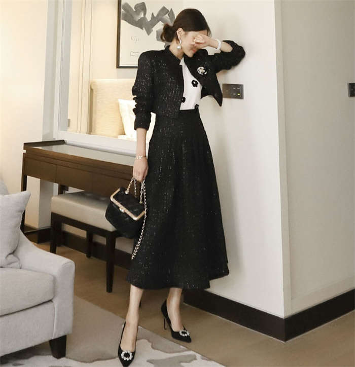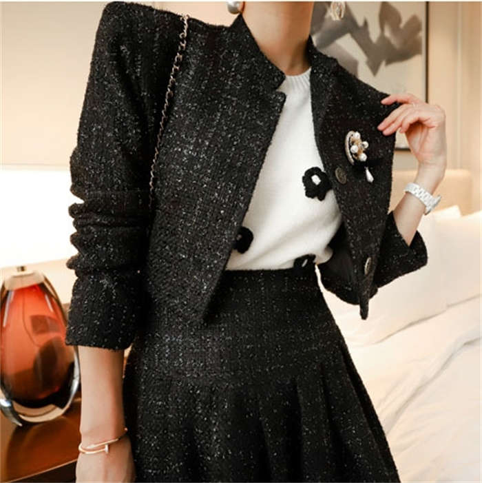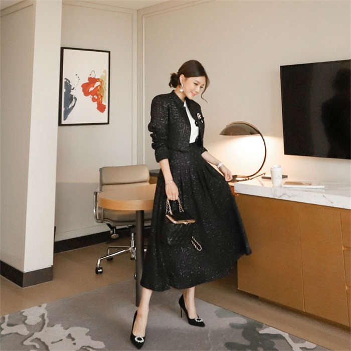 ツイードジャケット × フレアスカート