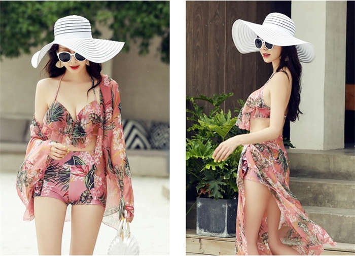 新作~ 花柄 カップル水着 4点セット