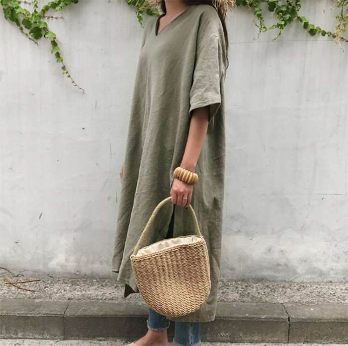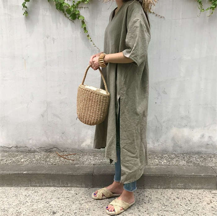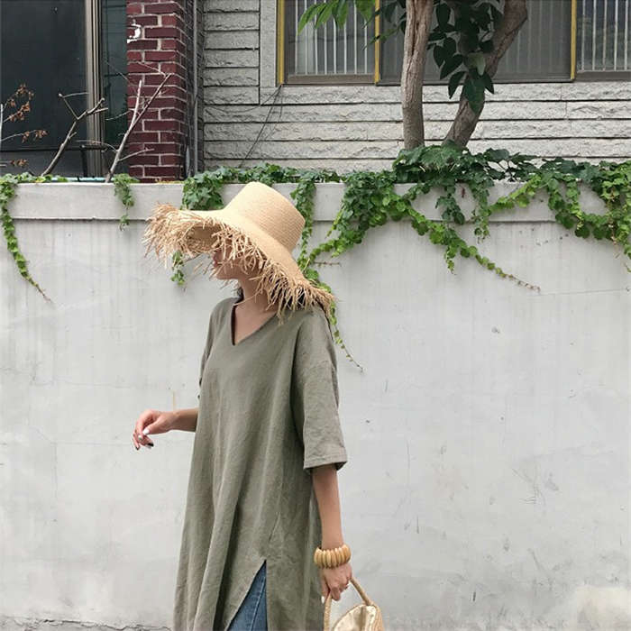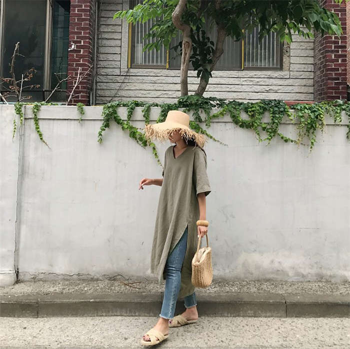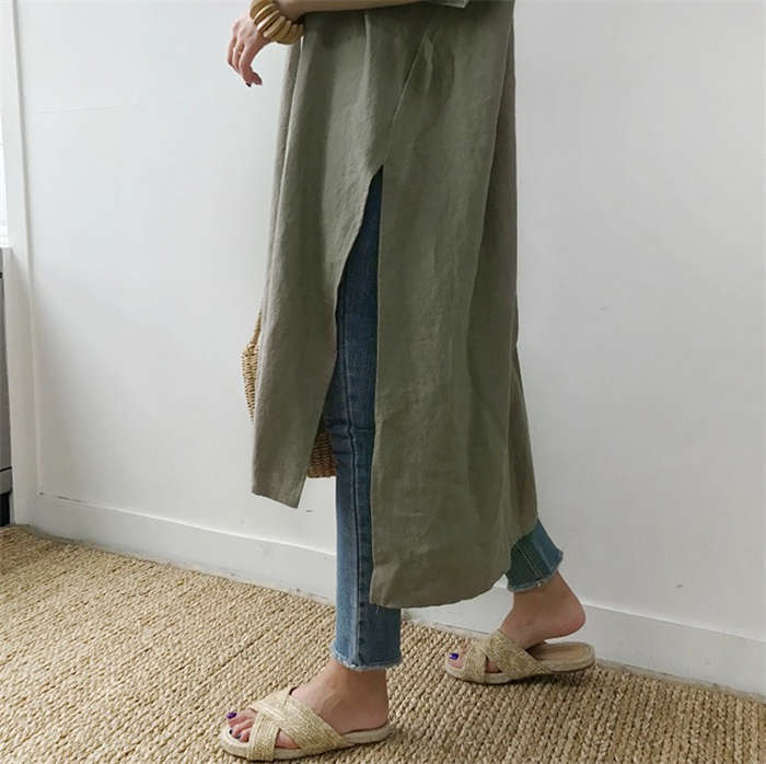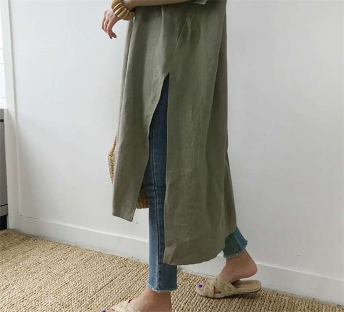 清涼感~ リネン風 ロングTシャツ C