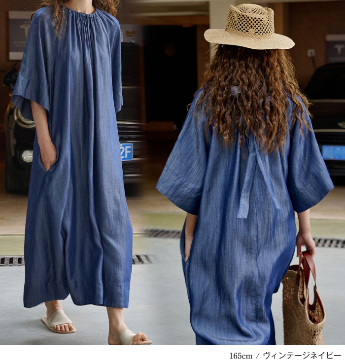 ひんやり 冷感デニムワンピース デニム