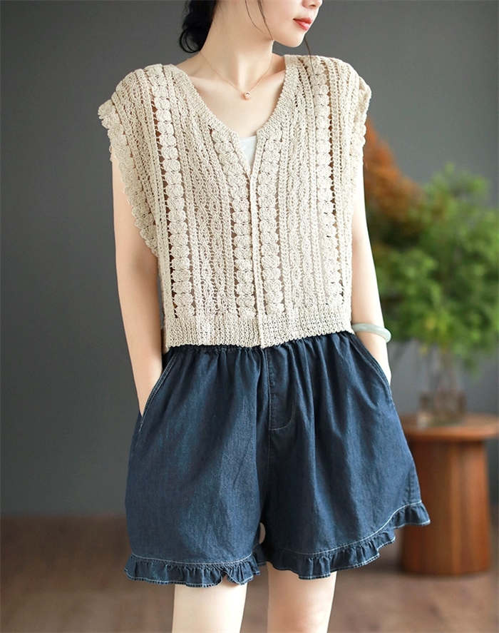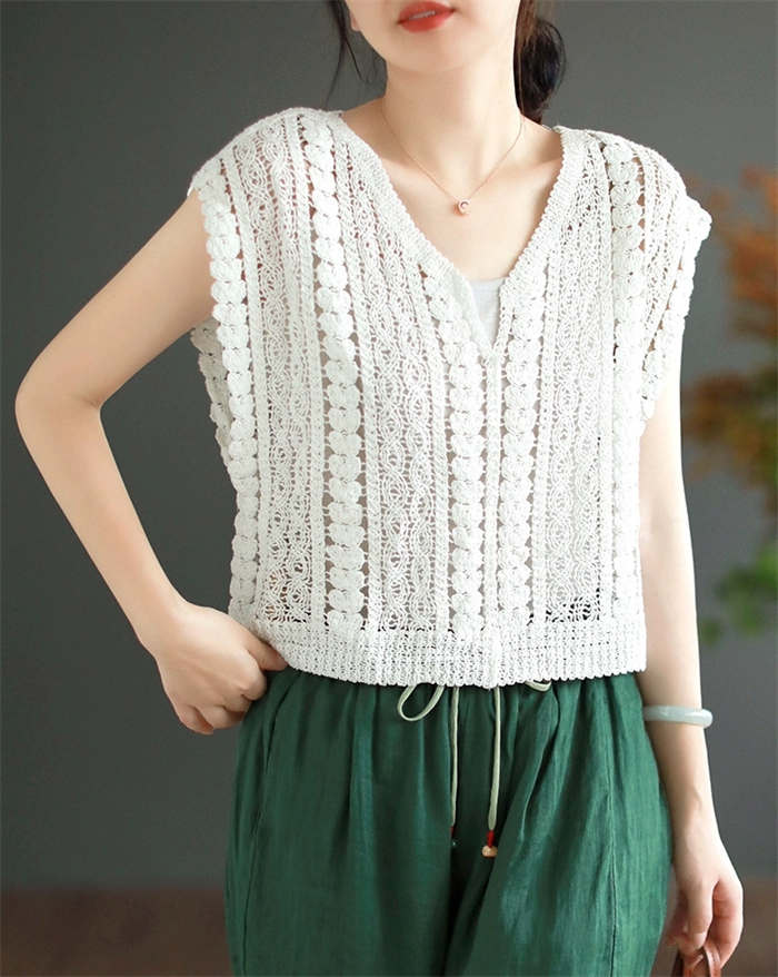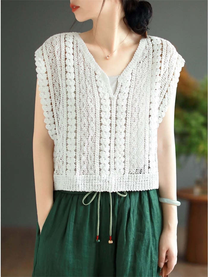 レイヤードスタイルに最適な透かし編み柄