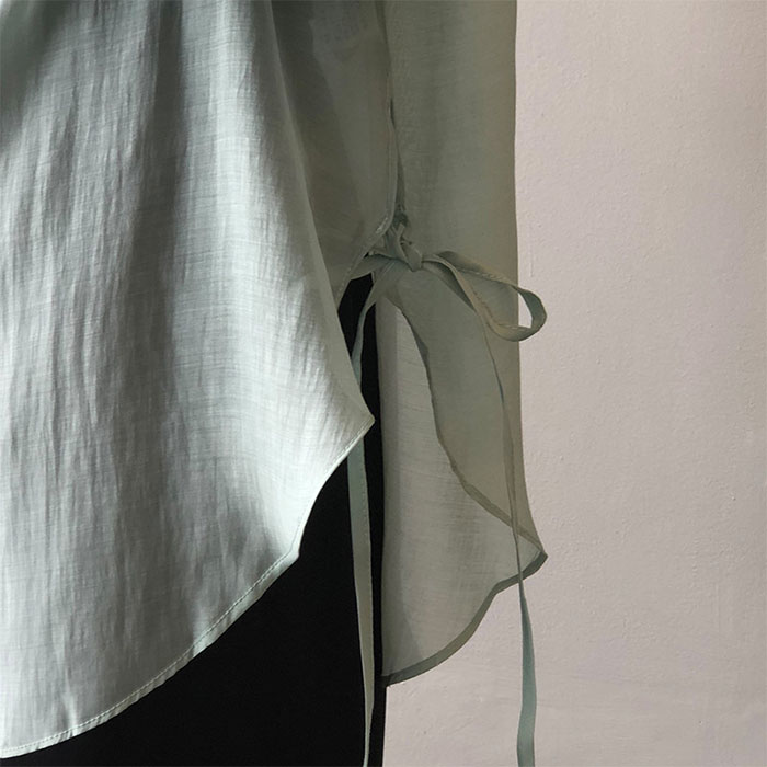 シアースリーブ ドッキングシャツ ボウタイシャツブラウス