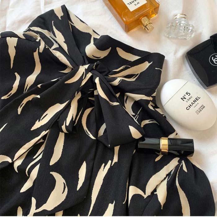 シアースリーブ ドッキングシャツ ボウタイシャツブラウス