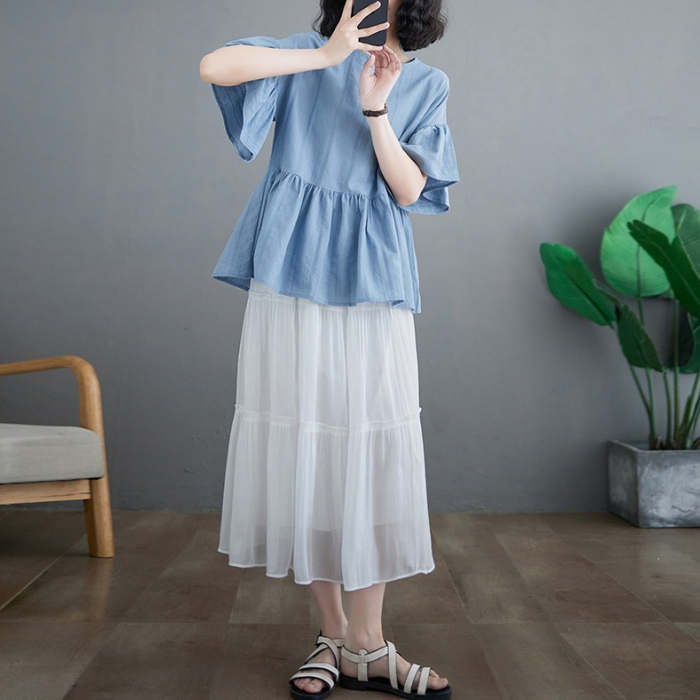 裾ペプラムがフェミニン感満載のフラウス