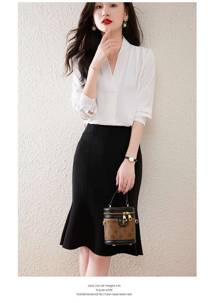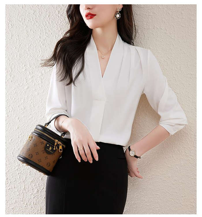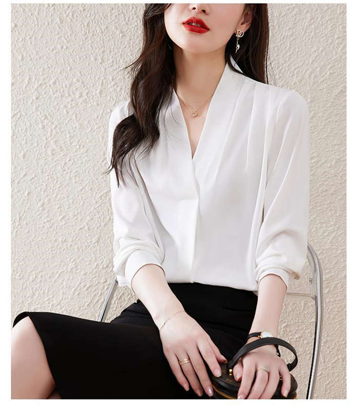 ブラウス フォーマル 長袖 白 Vネッ