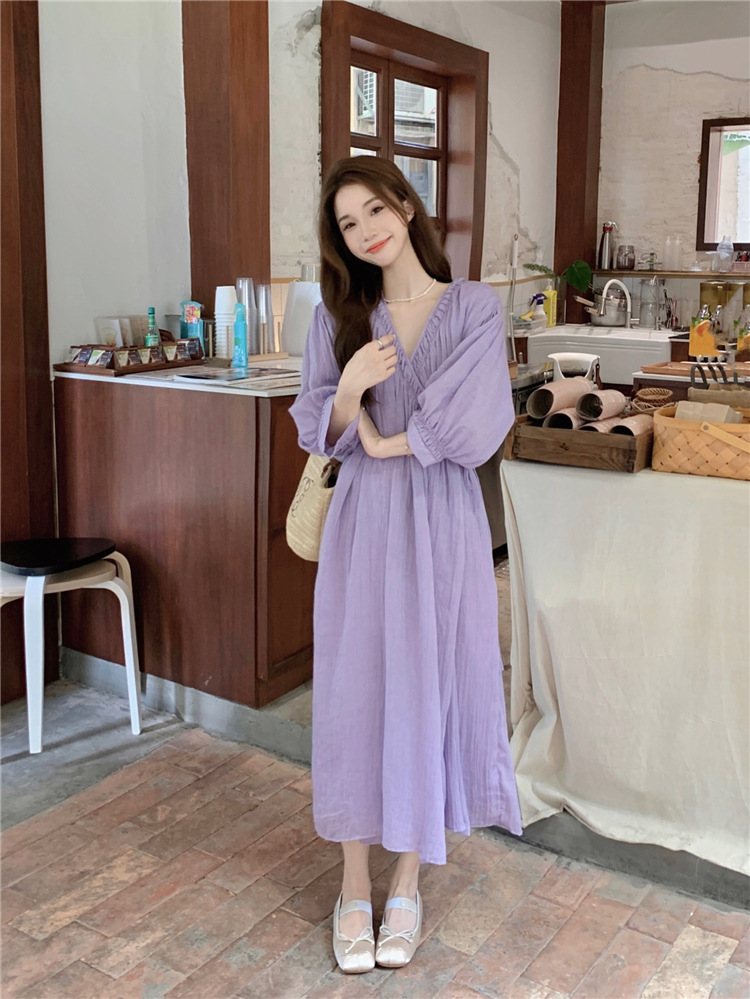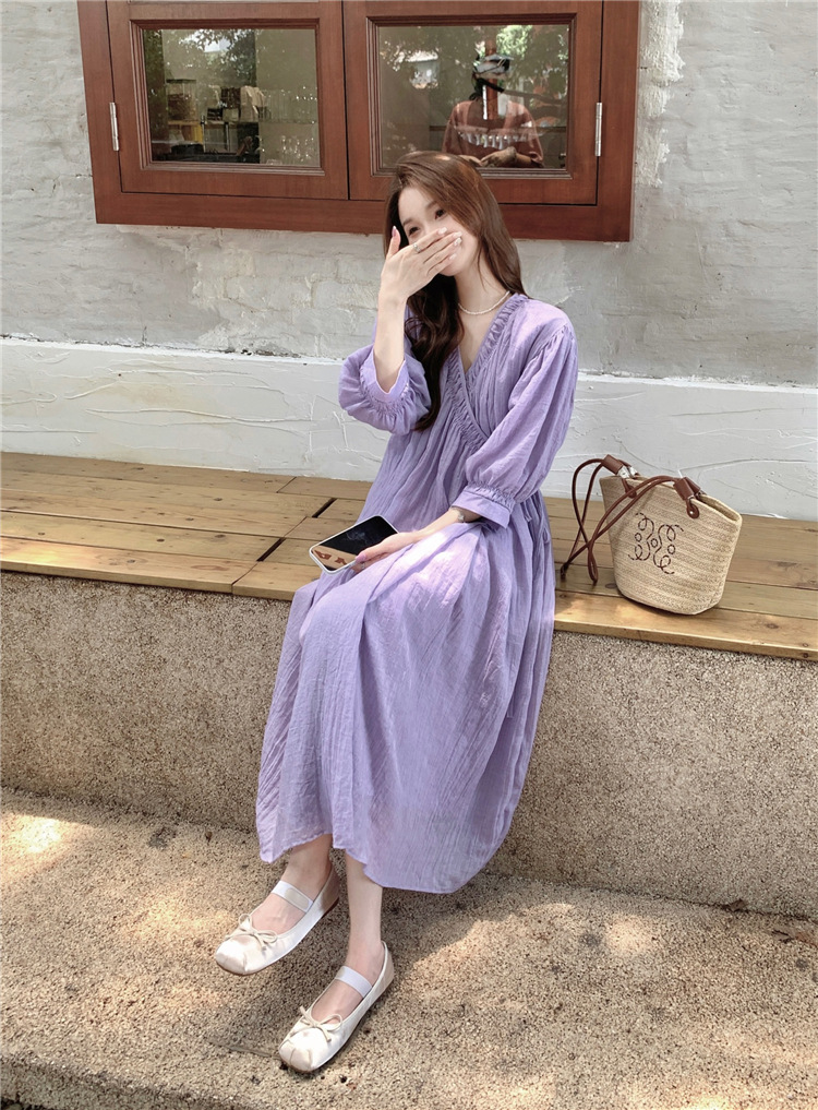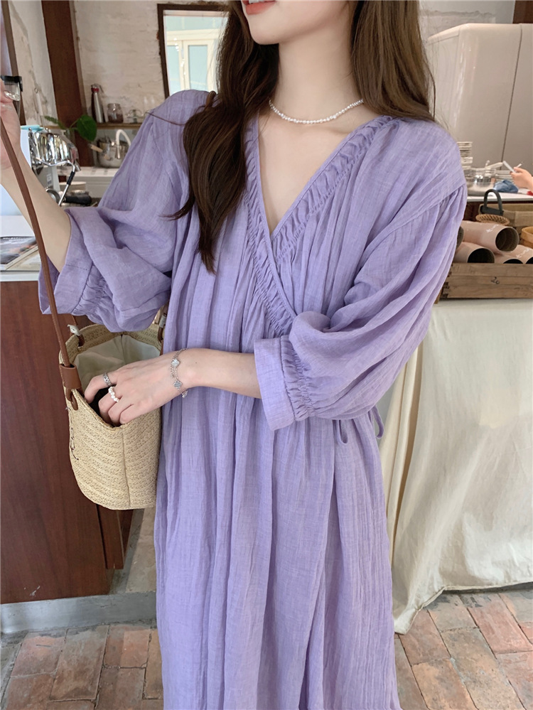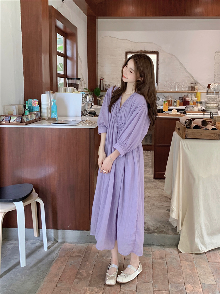 ゆったりワンピース Vネック 七分袖