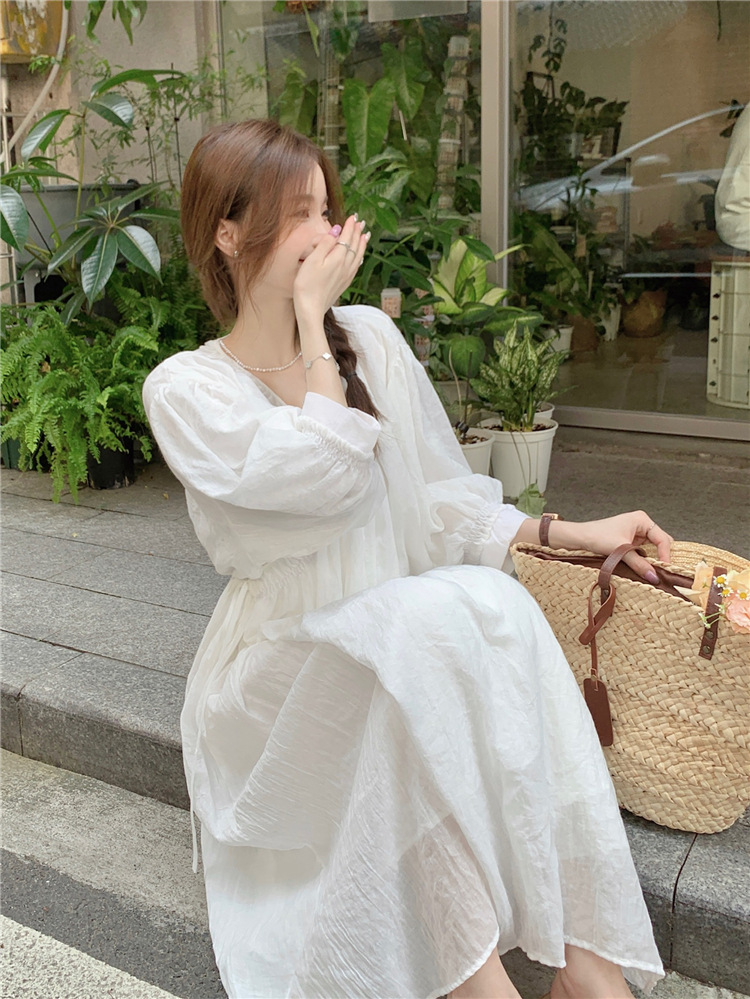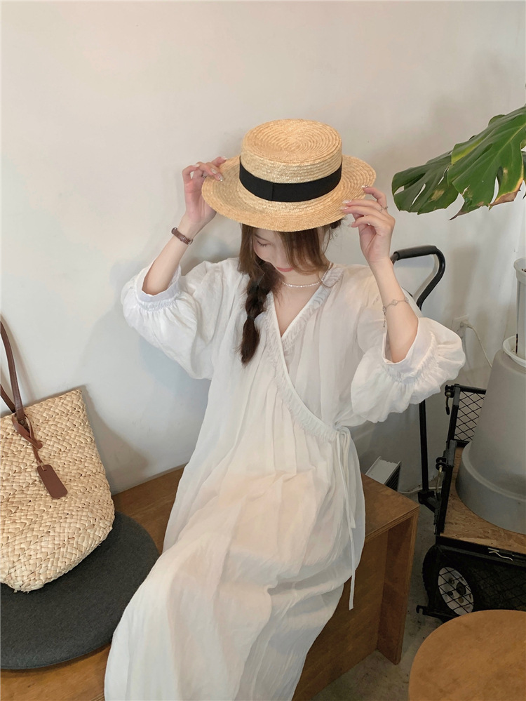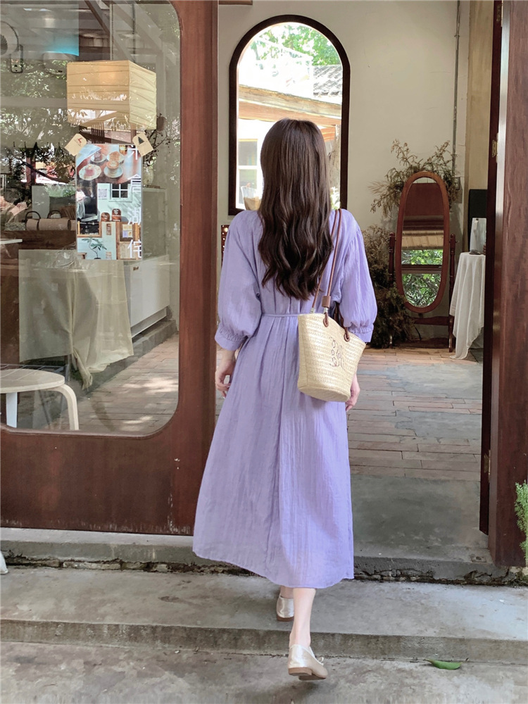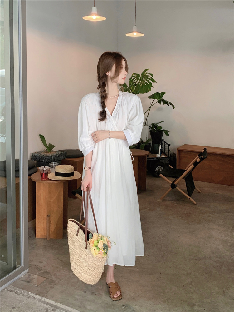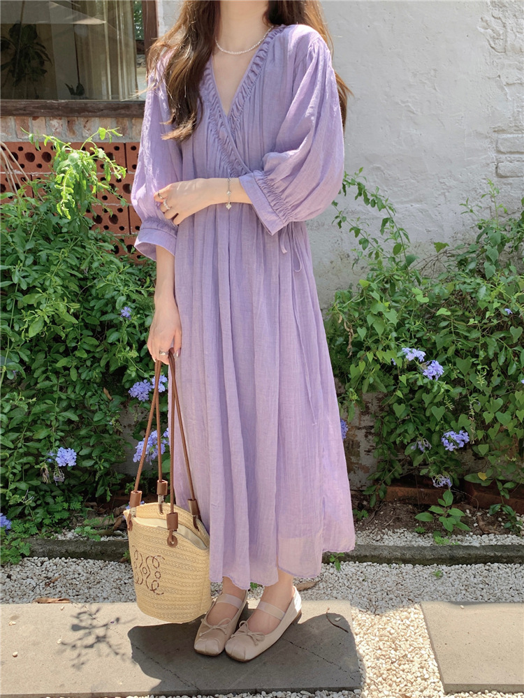 ゆったりワンピース Vネック 七分袖