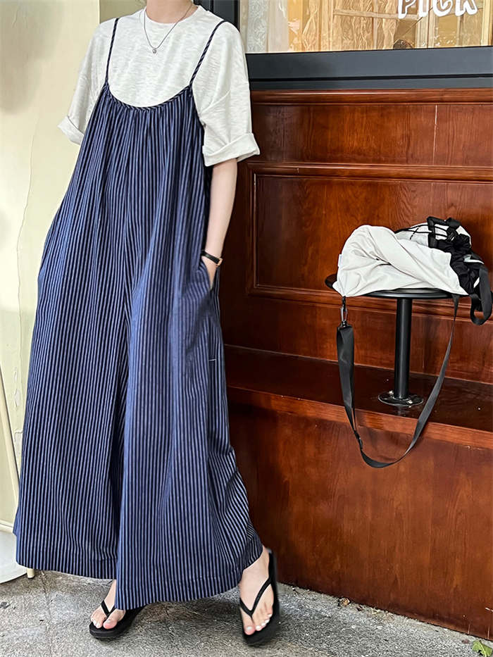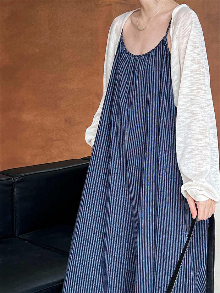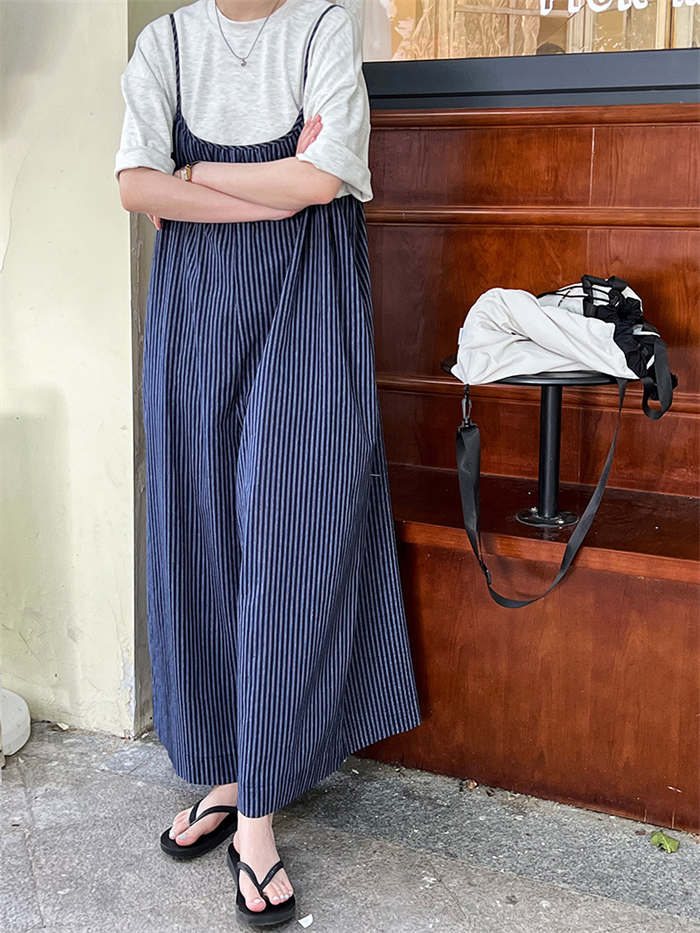 ストライプ柄が縦ラインを強調しスタイル