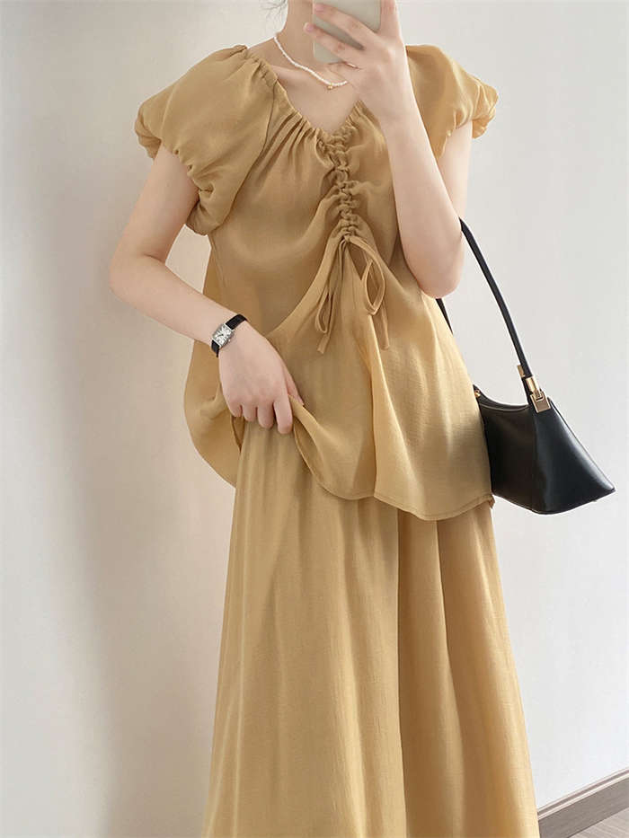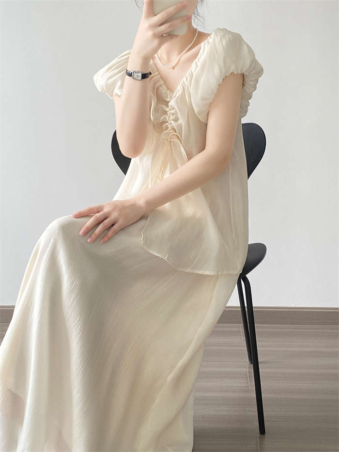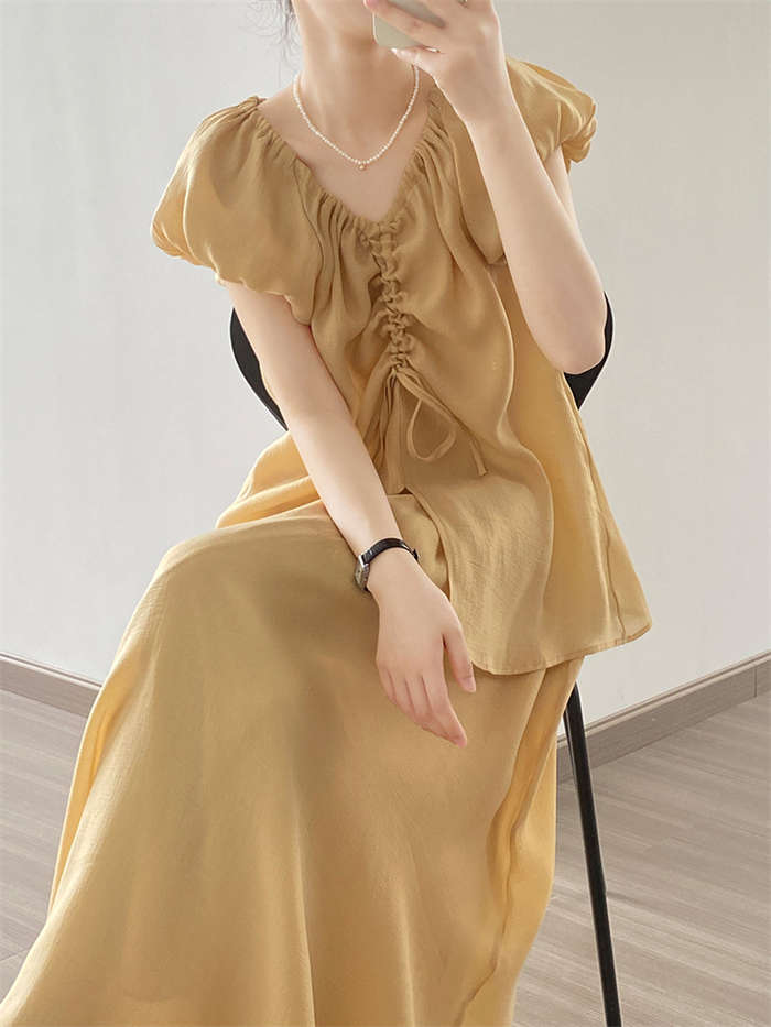 シアースリーブ ドッキングシャツ ボウタイシャツブラウス