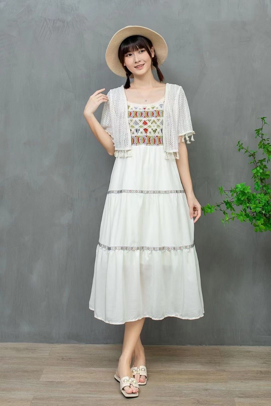 大人可愛いキャミワンピ エスニックワン