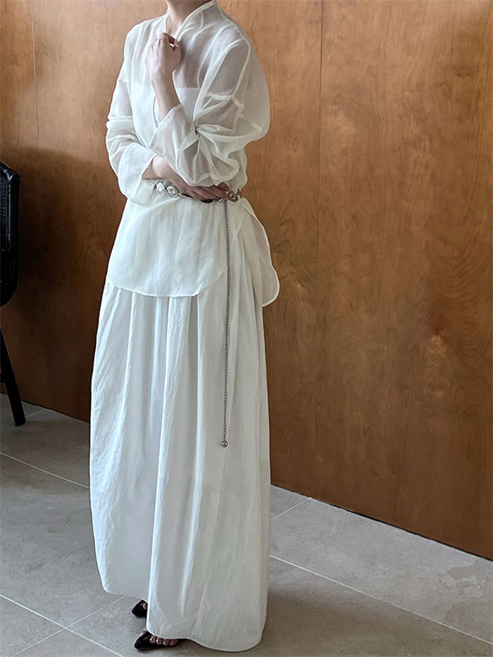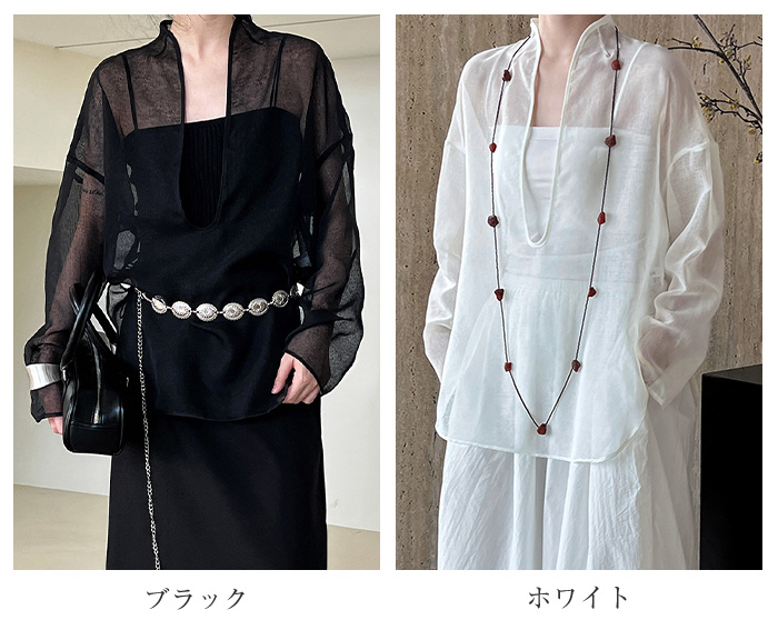 シフォンブラウス シアーブラウス ボリューム袖