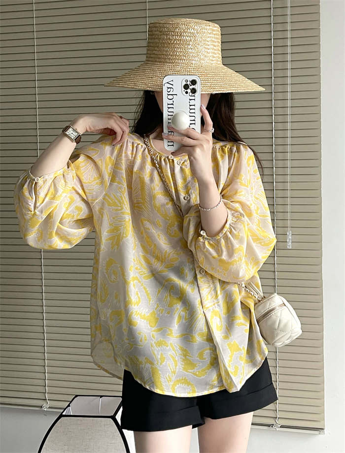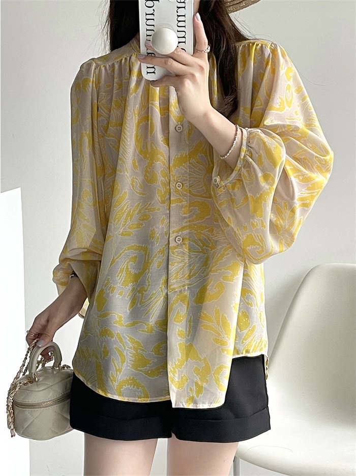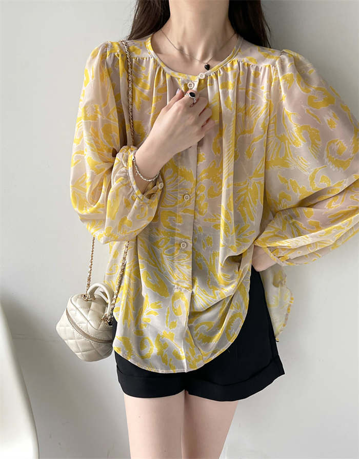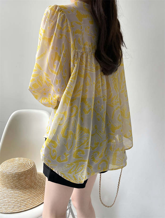 シフォンブラウス シアーブラウス ボリューム袖
