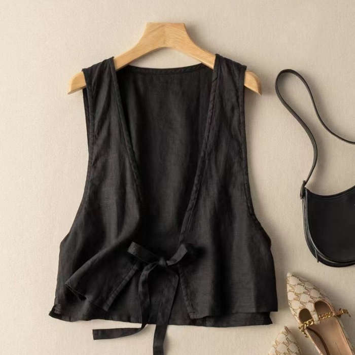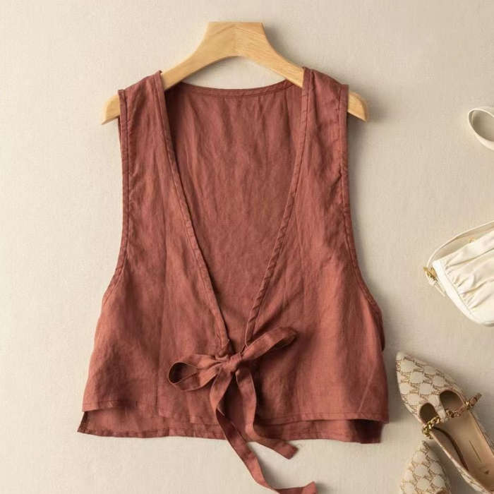 涼やかな風合いの綿麻ベスト♪Vネック