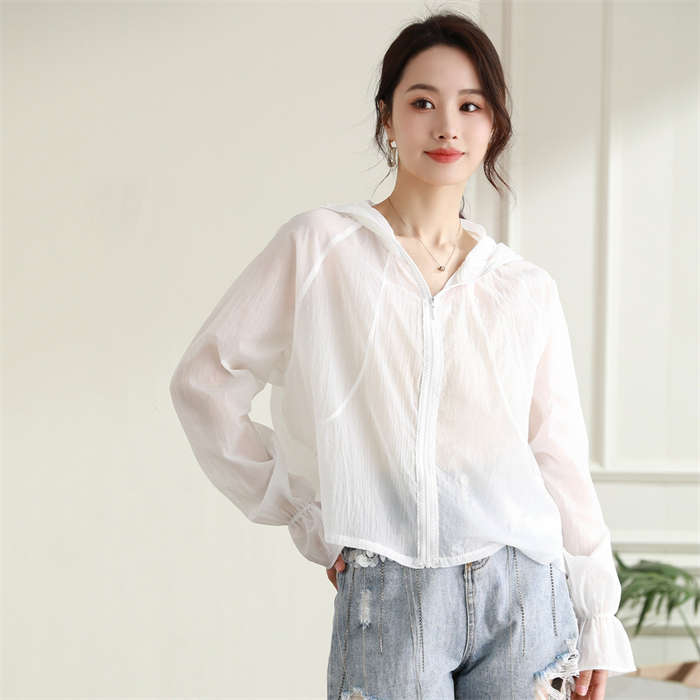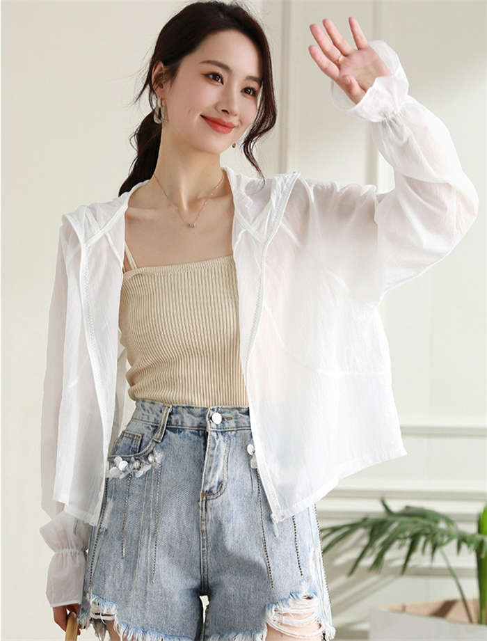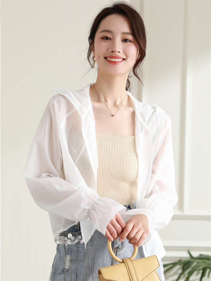 透け感のある女性らしいシースルーパーカ