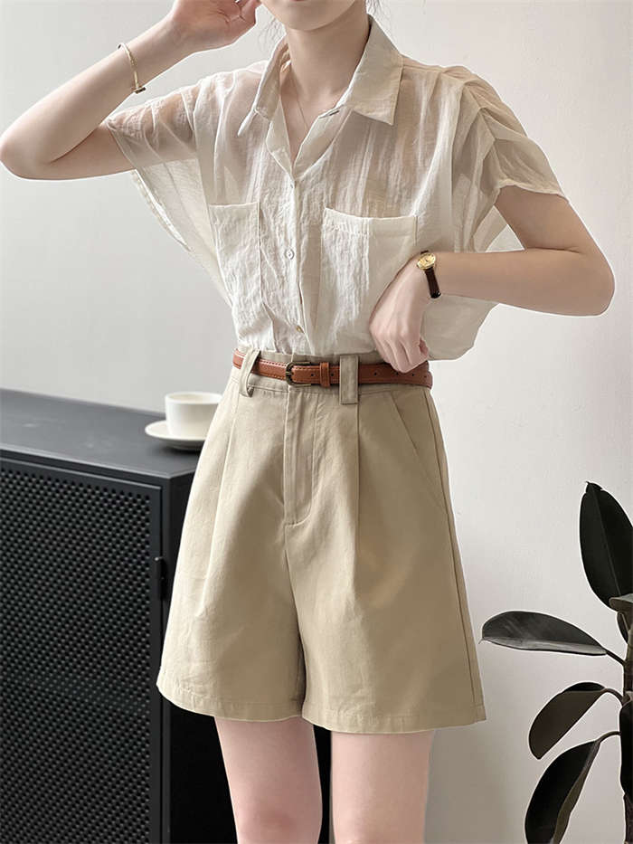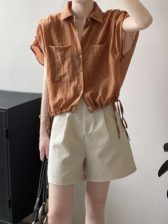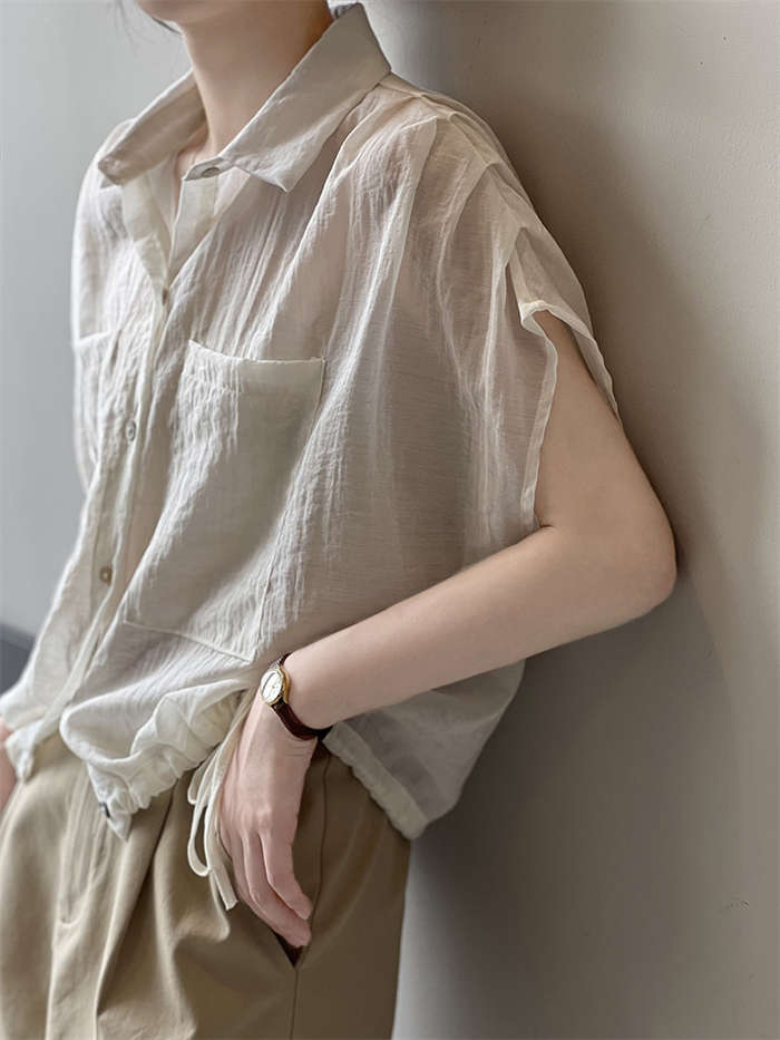 シアースリーブ ドッキングシャツ ボウタイシャツブラウス