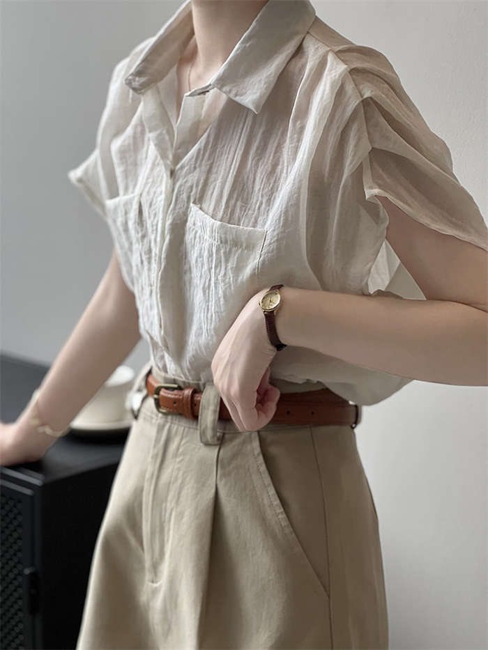 シフォンブラウス シアーブラウス ボリューム袖