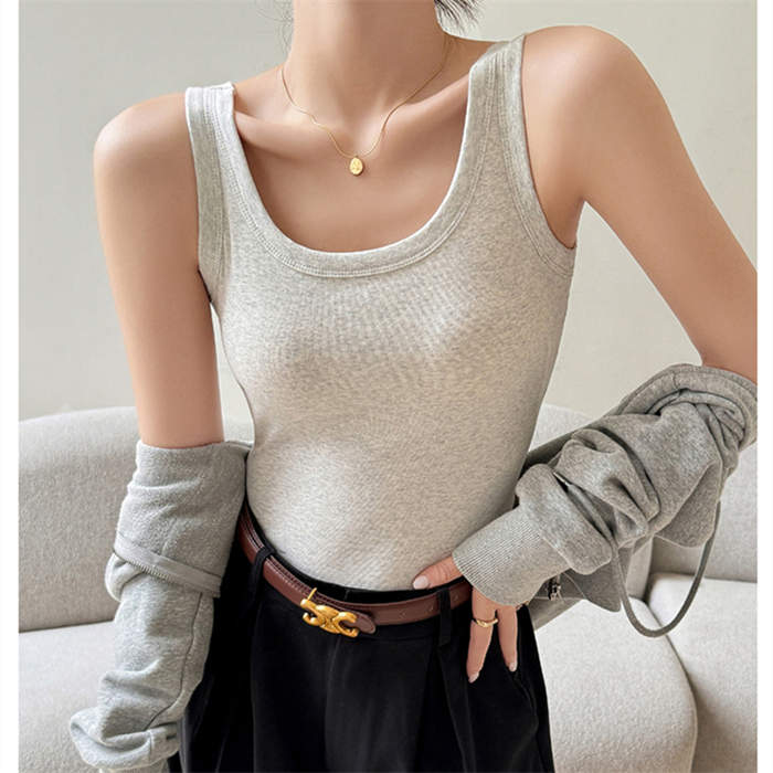 タンクトップレディースTシャツノースリーブUネックロゴプリント