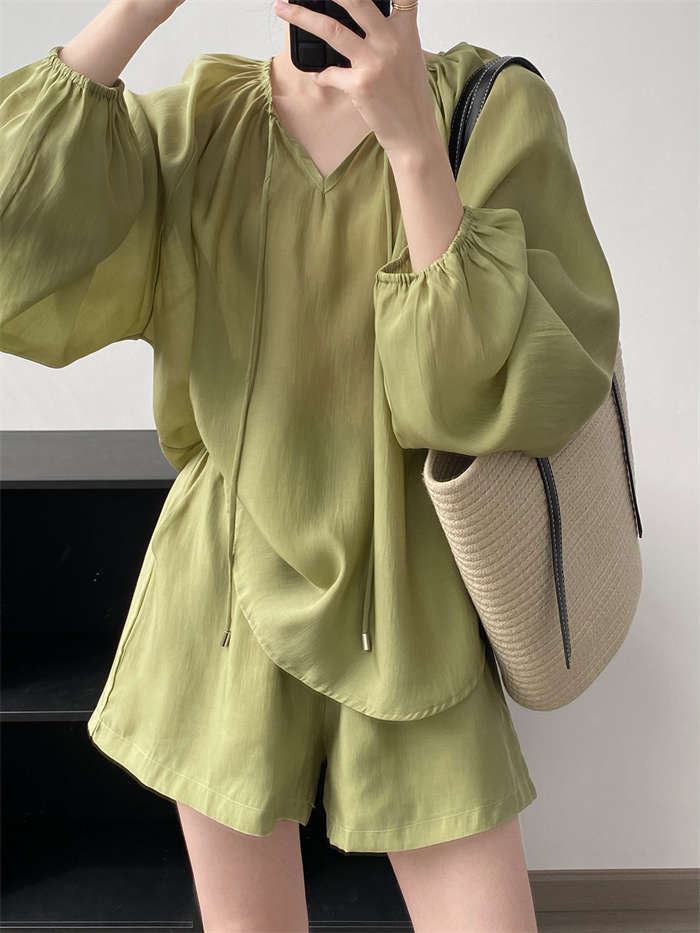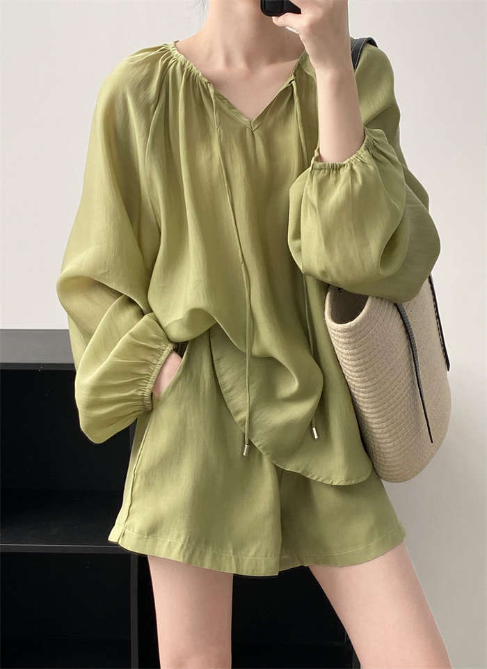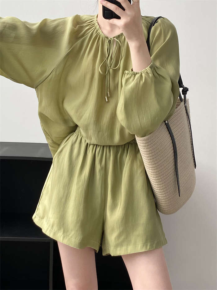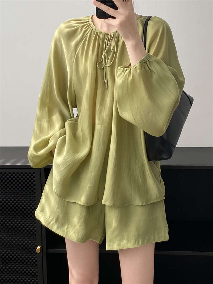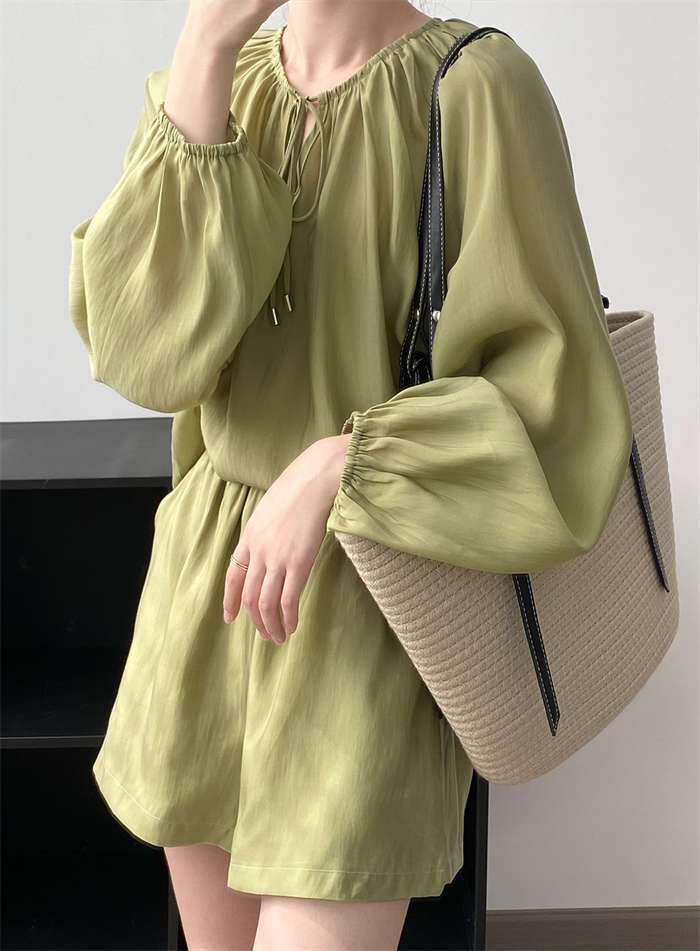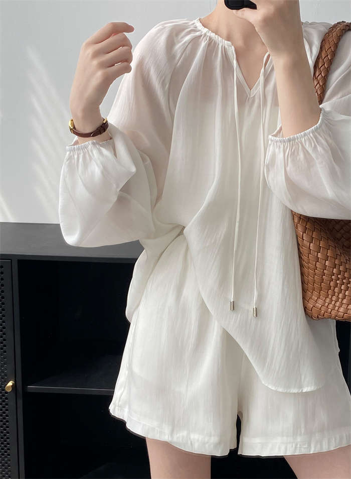 シアースリーブ ドッキングシャツ ボウタイシャツブラウス