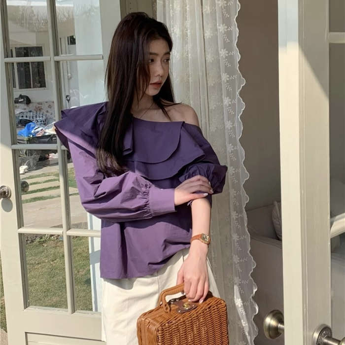 シフォンブラウス シアーブラウス ボリューム袖