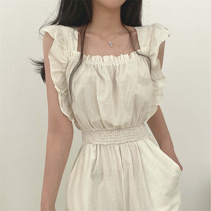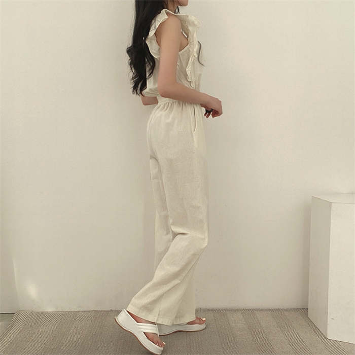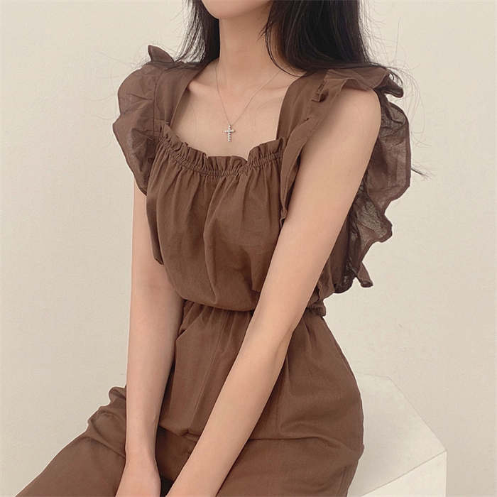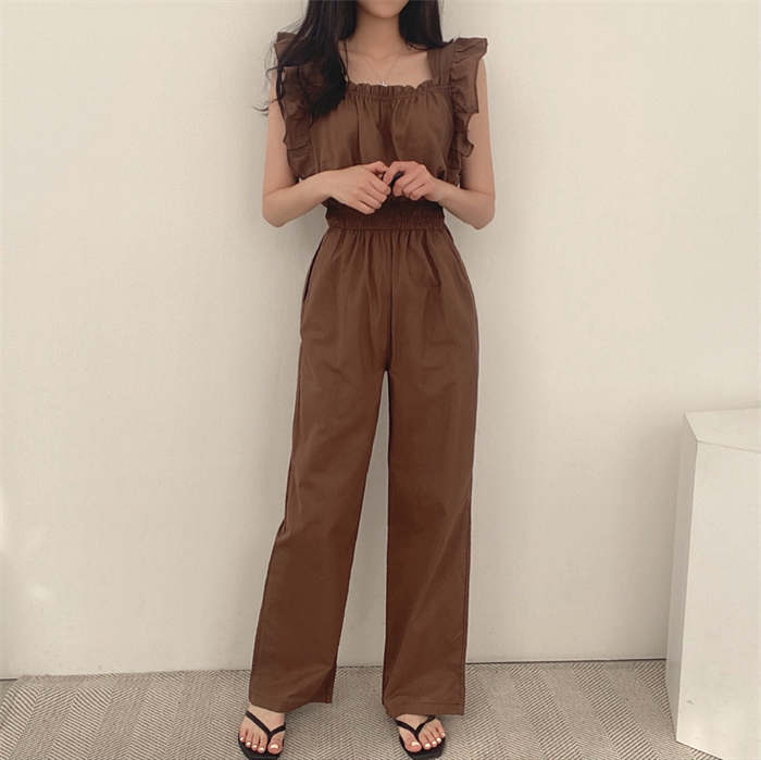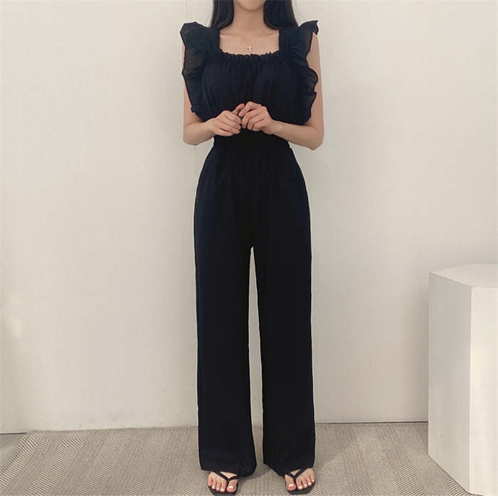 ギャザーフリルショルダーワイドオールイ