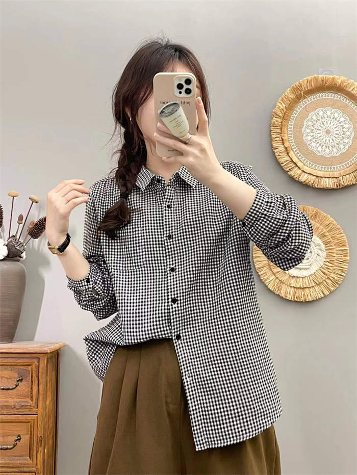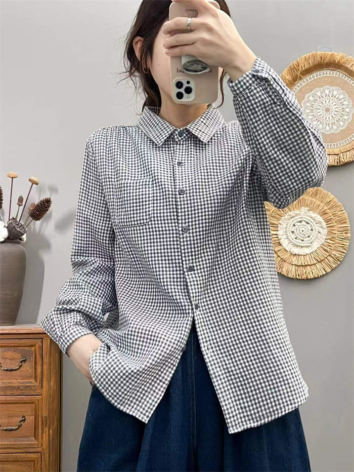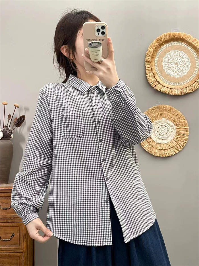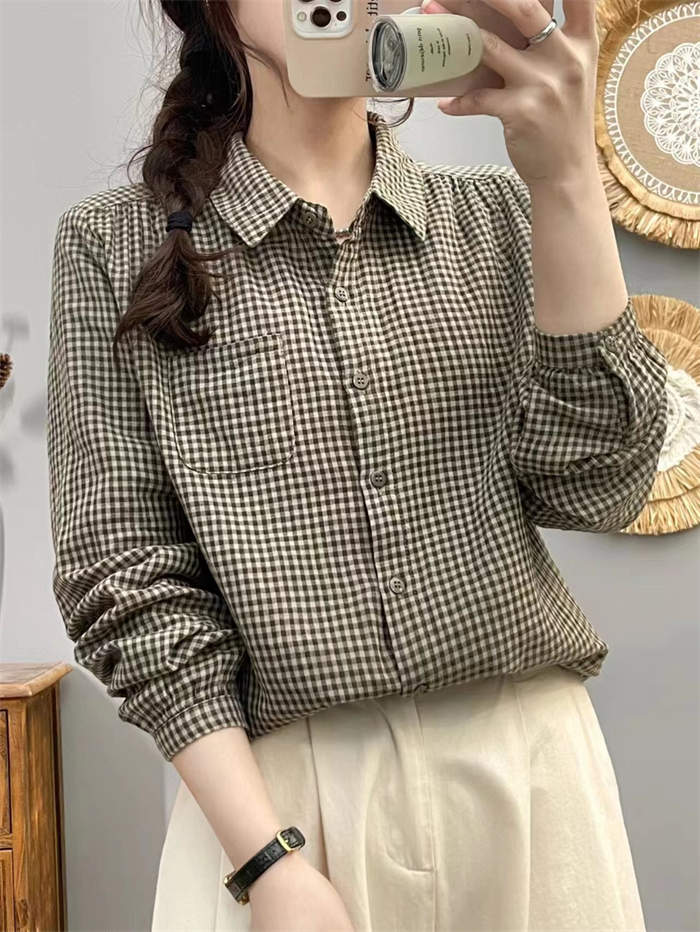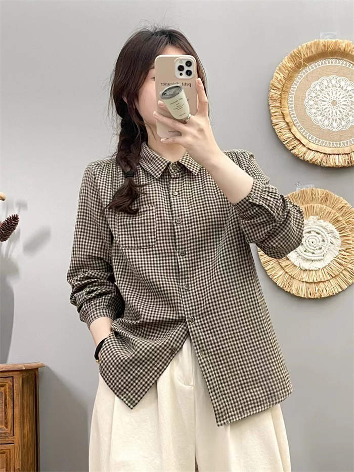 シャツ レディース 長袖 綿 チェック