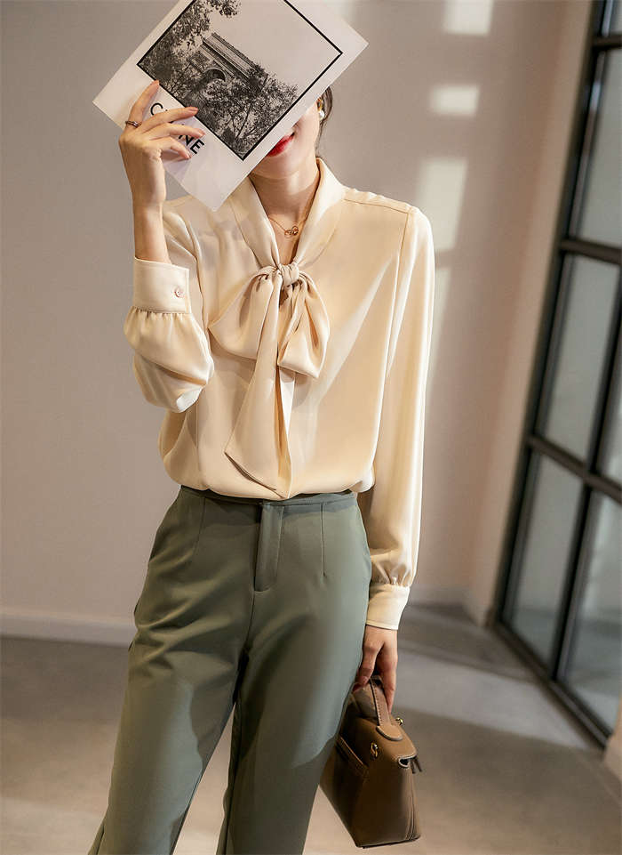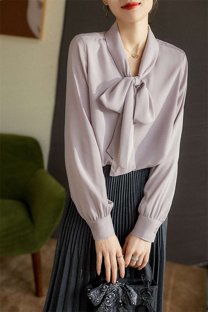 シアースリーブ ドッキングシャツ ボウタイシャツブラウス