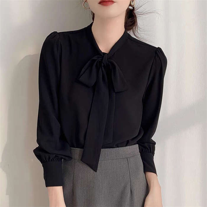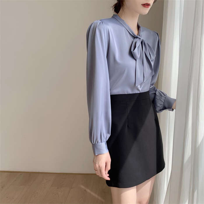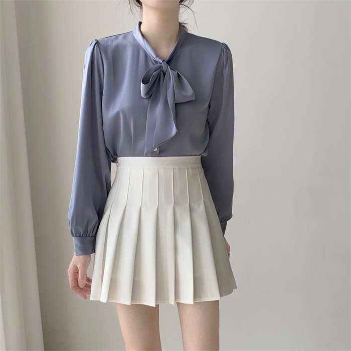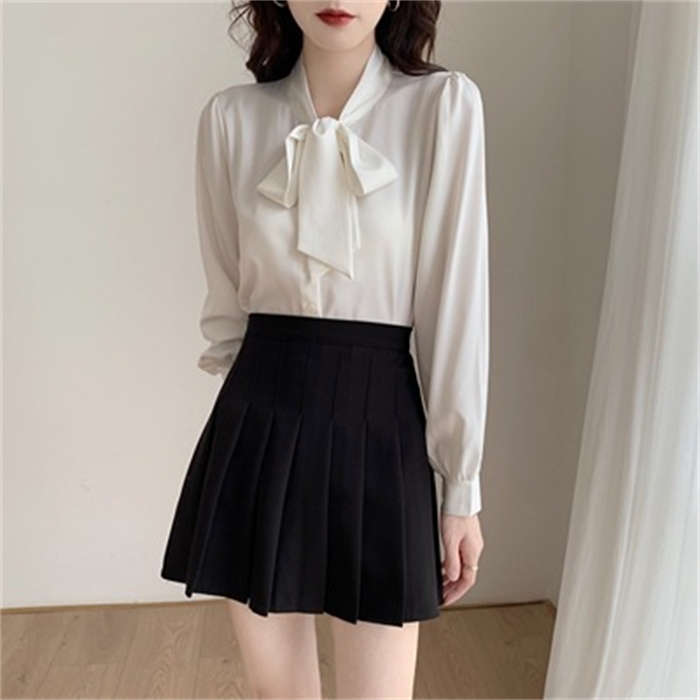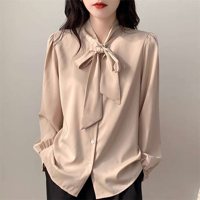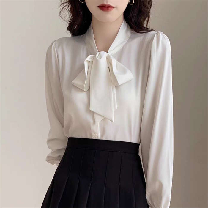 シアースリーブ ドッキングシャツ ボウタイシャツブラウス
