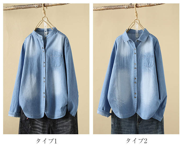 シャツ デニム レディース 長袖 トッ