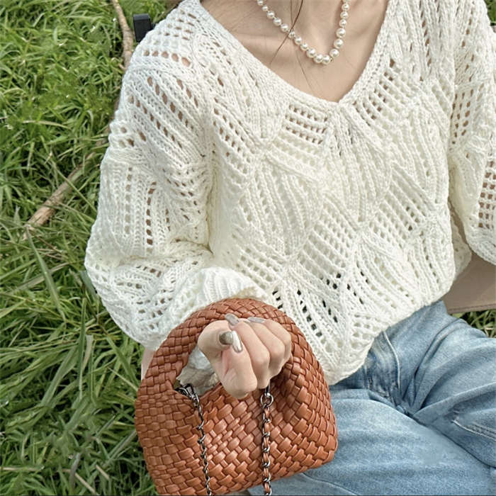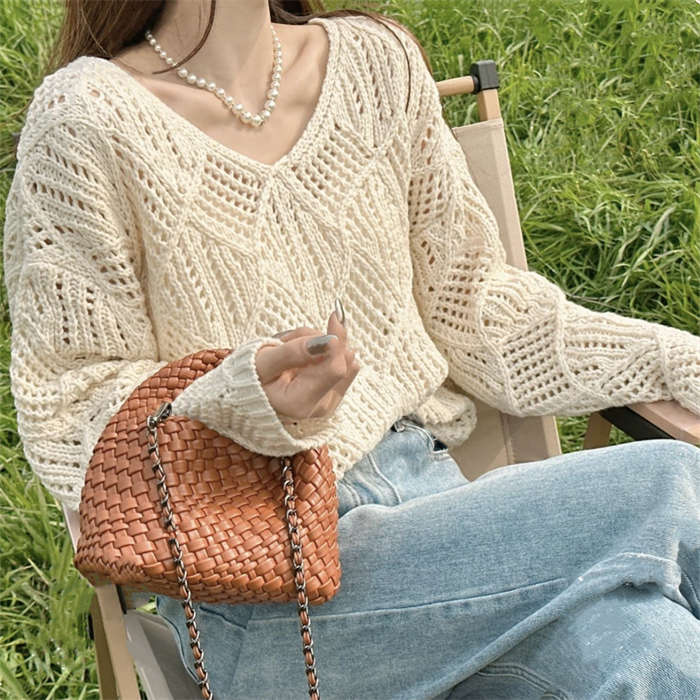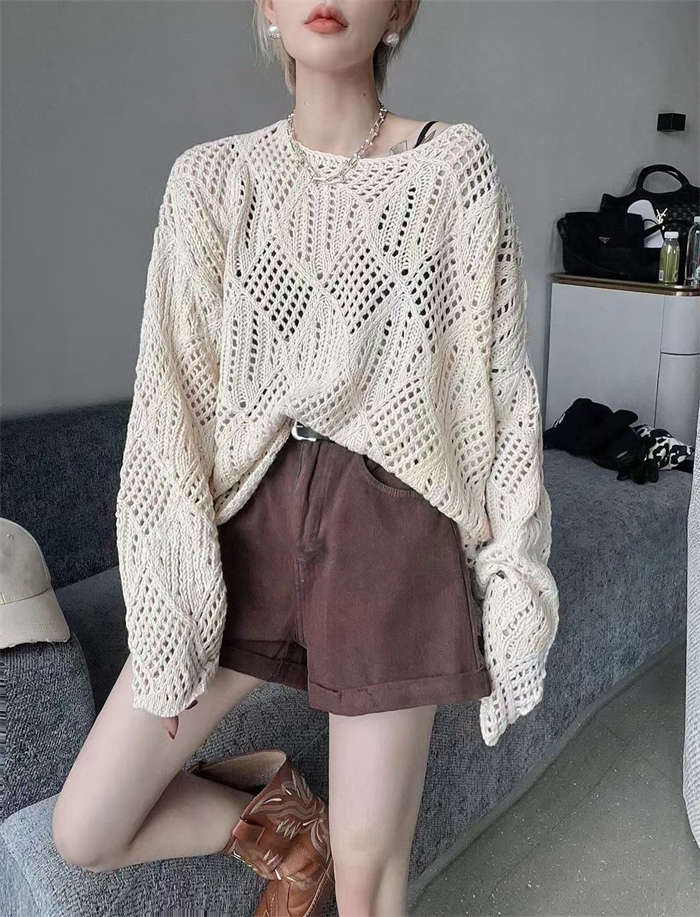 透かし編みの華奢見えするニットプルオー