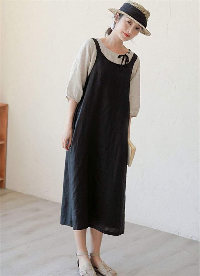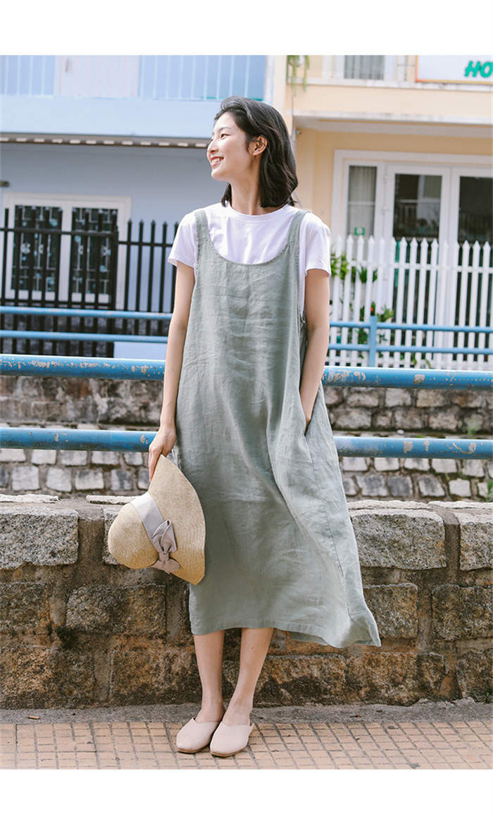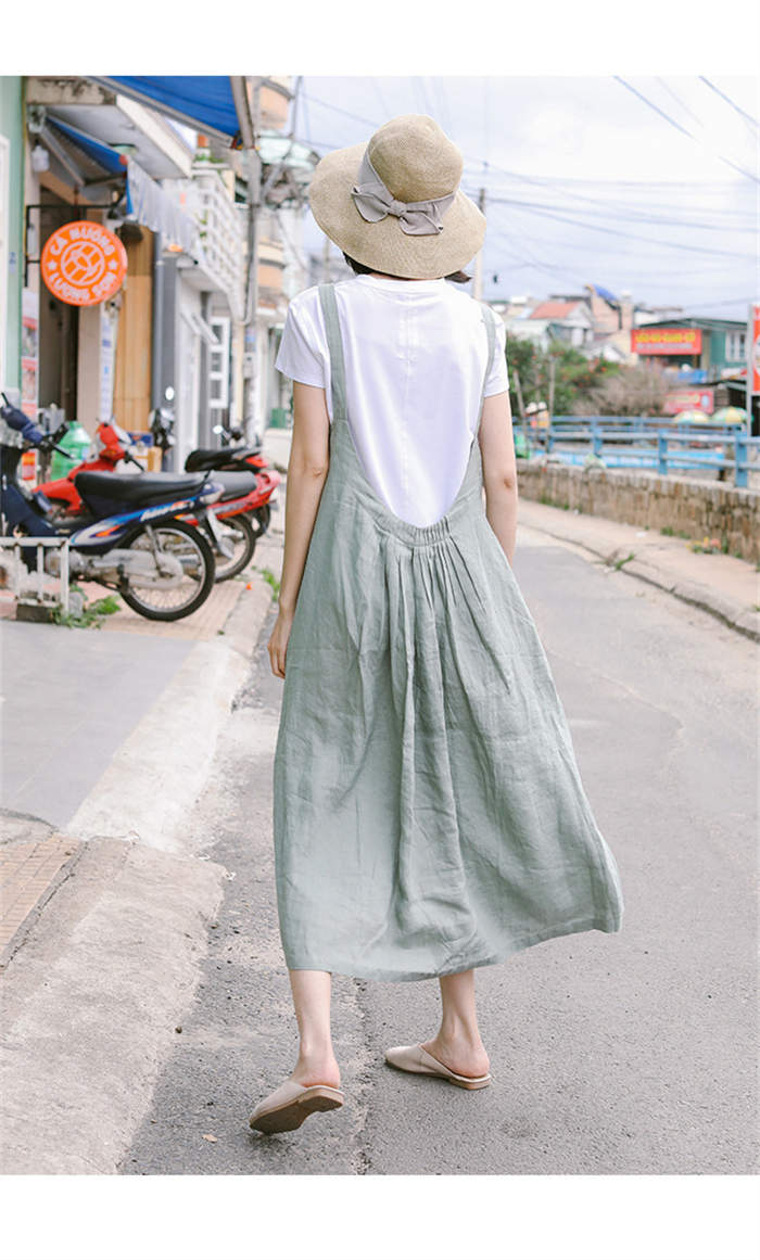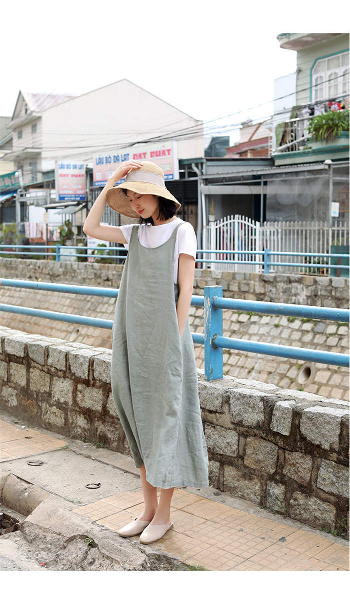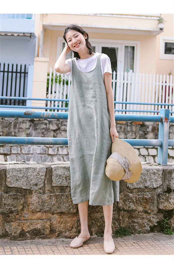 サロペット スカート 綿麻 きれいめ