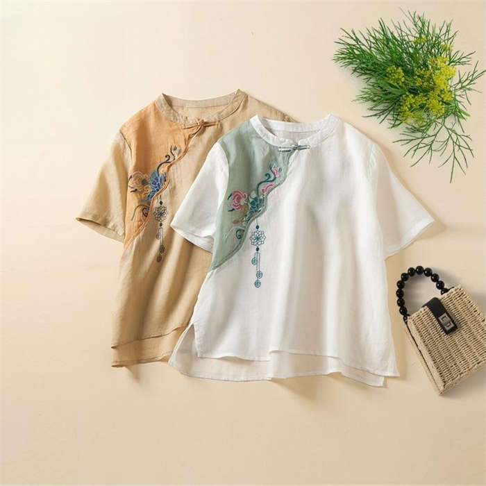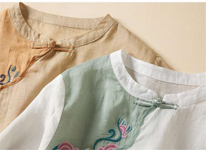 ブラウスシャツ レディース 綿麻風 プ
