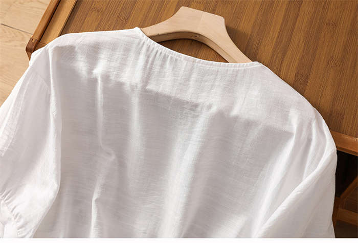 シャツ レディース 半袖 折り襟 白 夏 お洒落 ブラウス プルオーバー 総柄 トップス 綿100% きれいめ 薄手 透け感 大人 カジュアル シンプル 体型カバー 大きいサイズ ゆったり 通勤 20