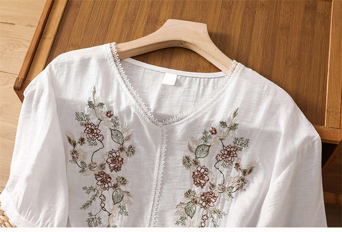 シャツ 綿麻 上品 花柄 刺繍 tシャ