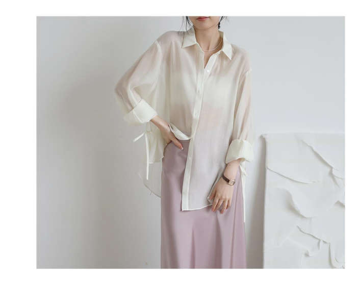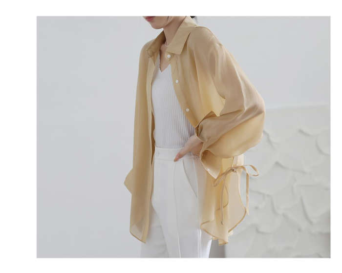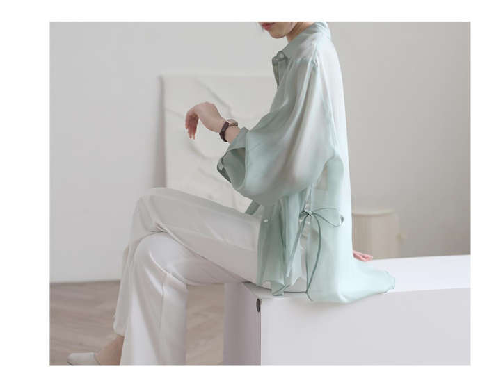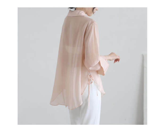 シアースリーブ ドッキングシャツ ボウタイシャツブラウス