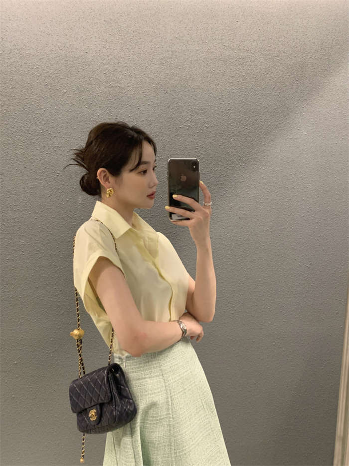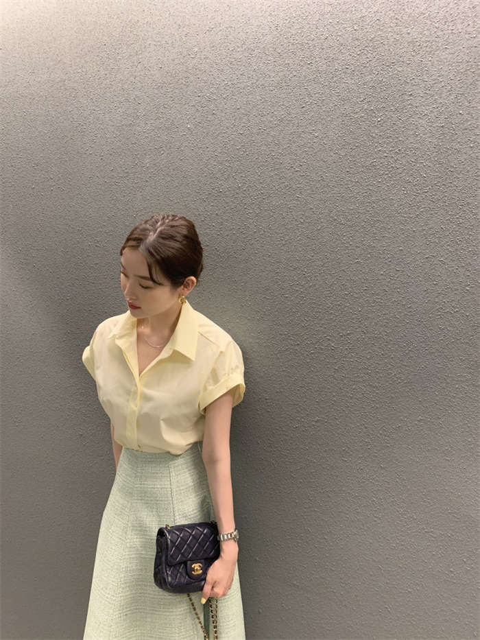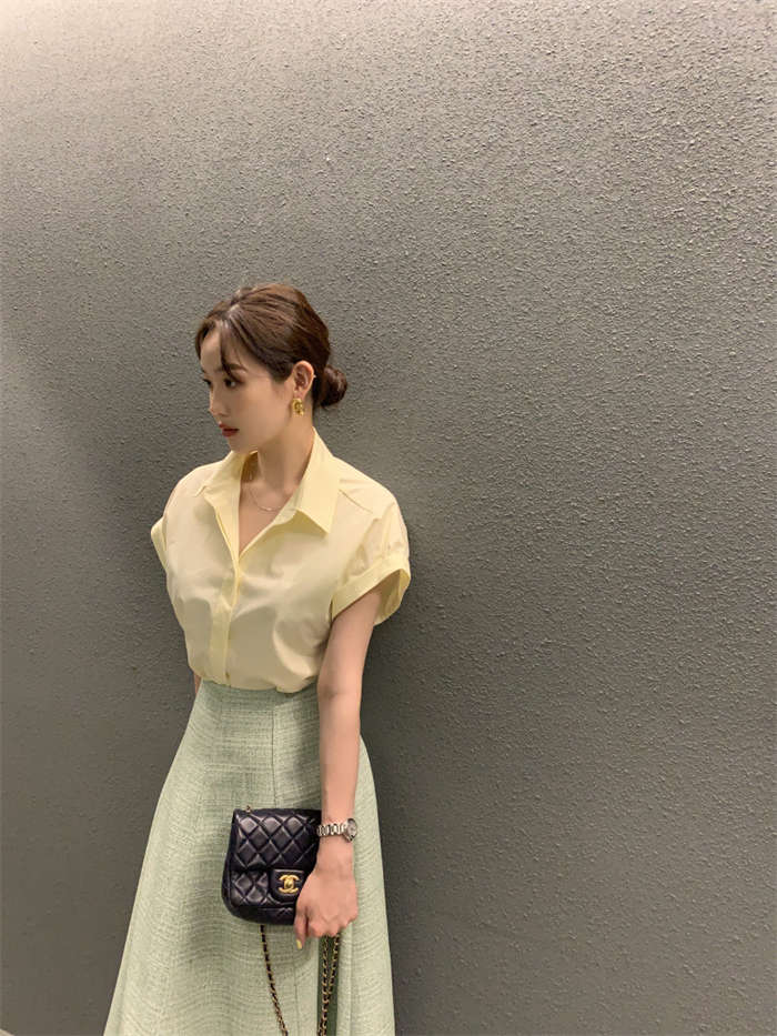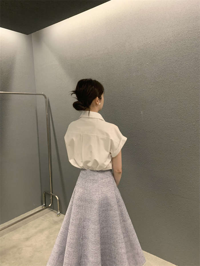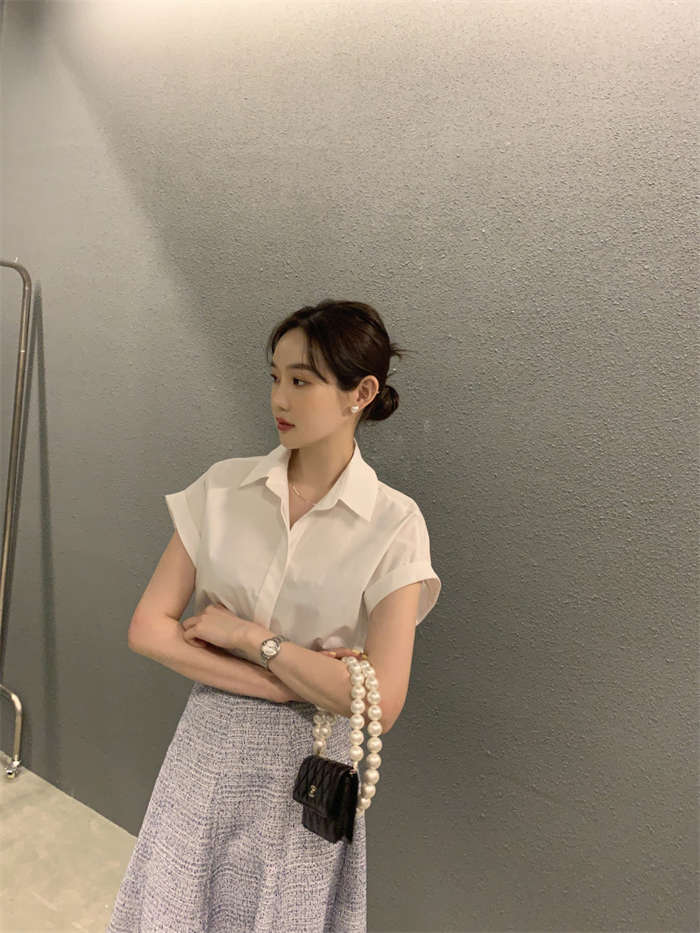 シャツ レディース 半袖 折り襟 白