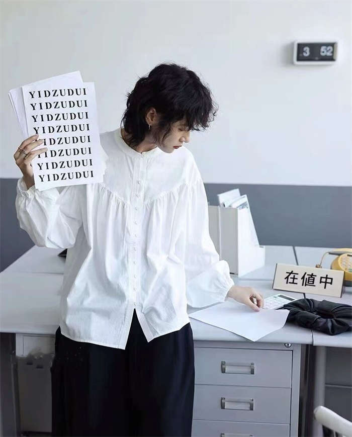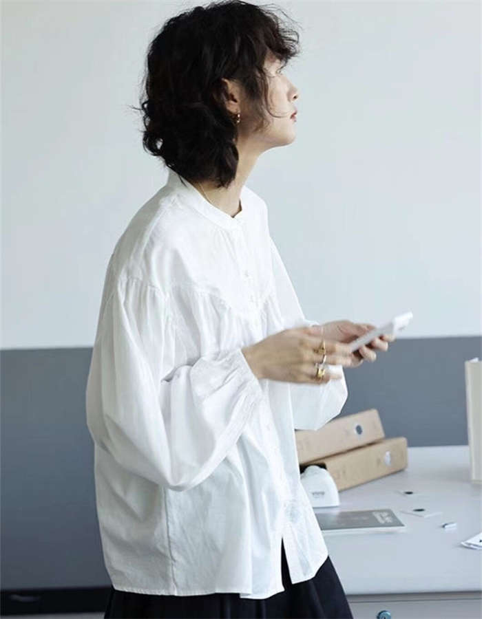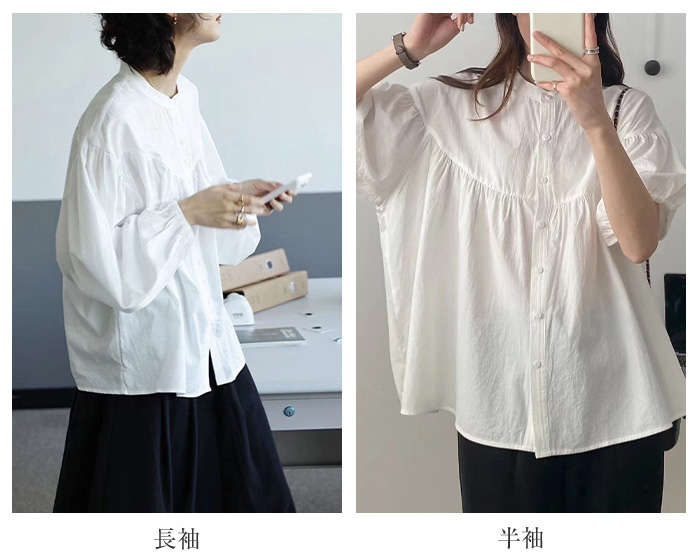 シャツ レディース 長袖 半袖 立ち襟