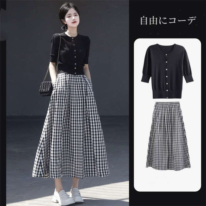 horizontal-key: 半袖ニット スカート 上下セット